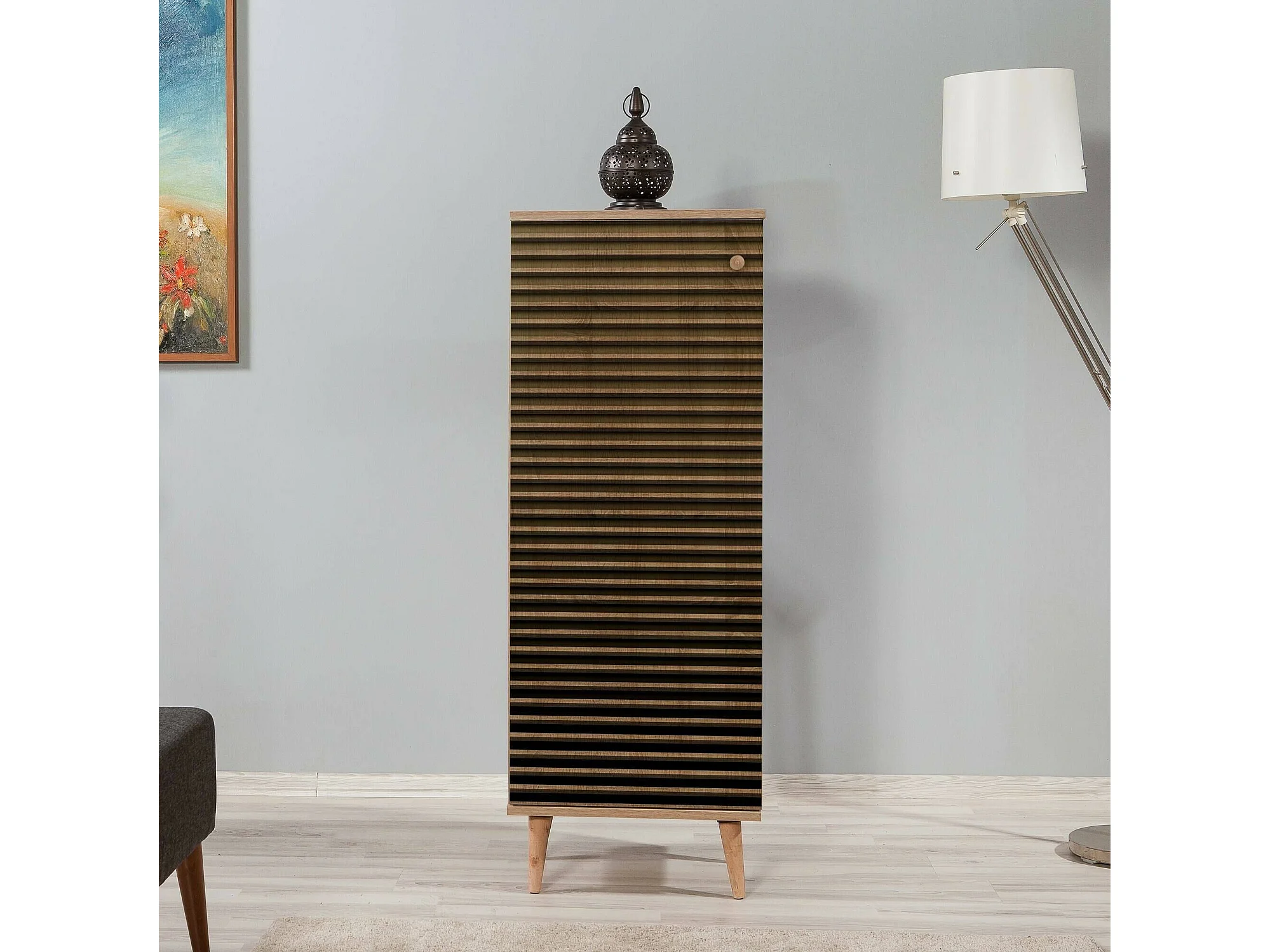 Meuble à chaussures Cebalrai, Meuble à chaussures, Armoire d'entrée polyvalente, Rangement pour chaussures, 50x38h135 cm, Chêne