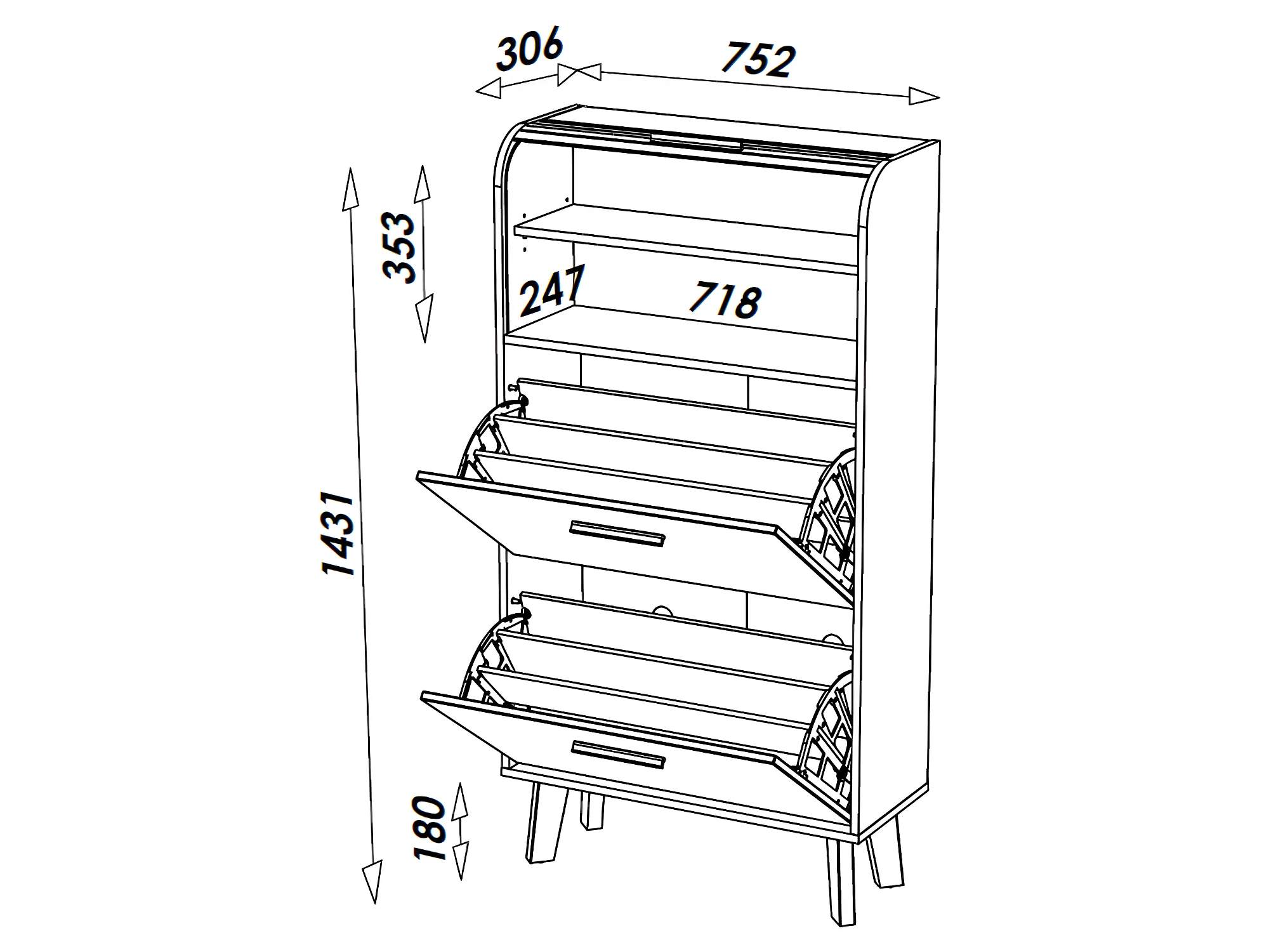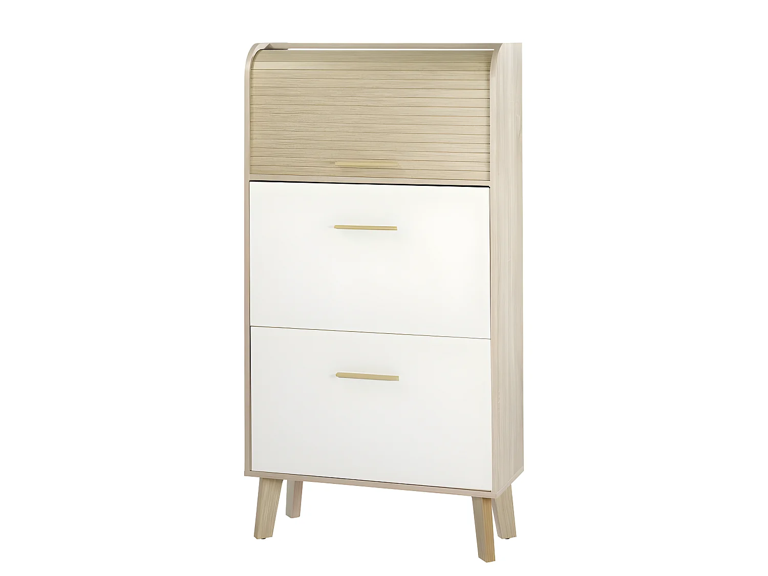 Meuble à Chaussures Chêne 2 Abattants Blancs 1 Rideau 75,2 x 143,1 x 30,6 cm - Coloris Rideau: Rideau Chêne