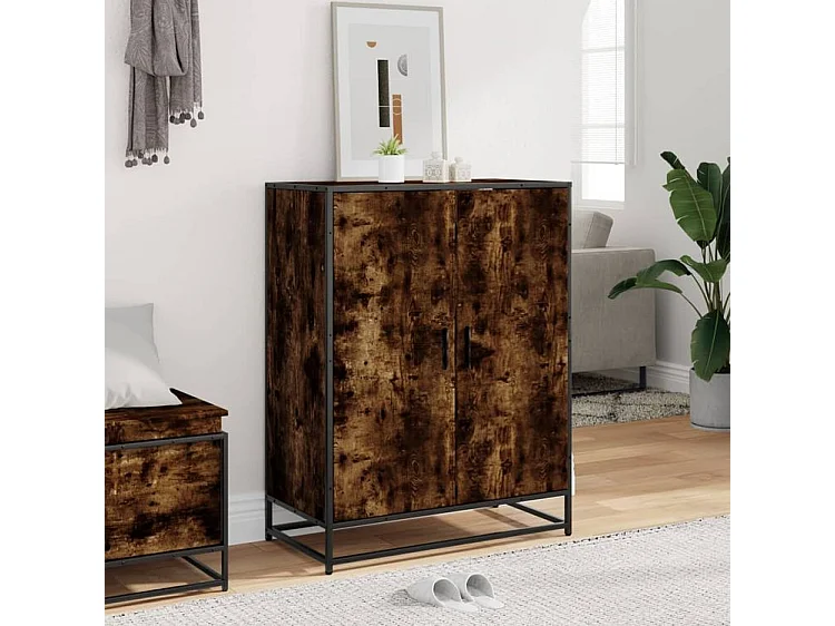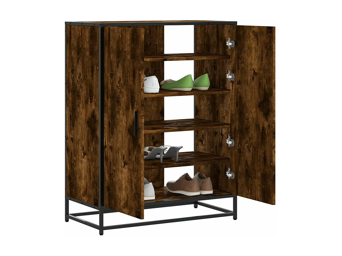 Meuble à chaussures chêne fumé bois d'ingénierie et métal