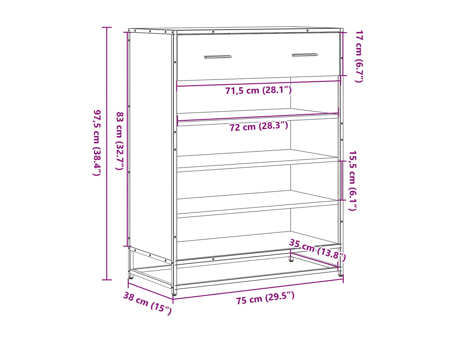 Meuble à chaussures chêne fumé bois d'ingénierie et métal