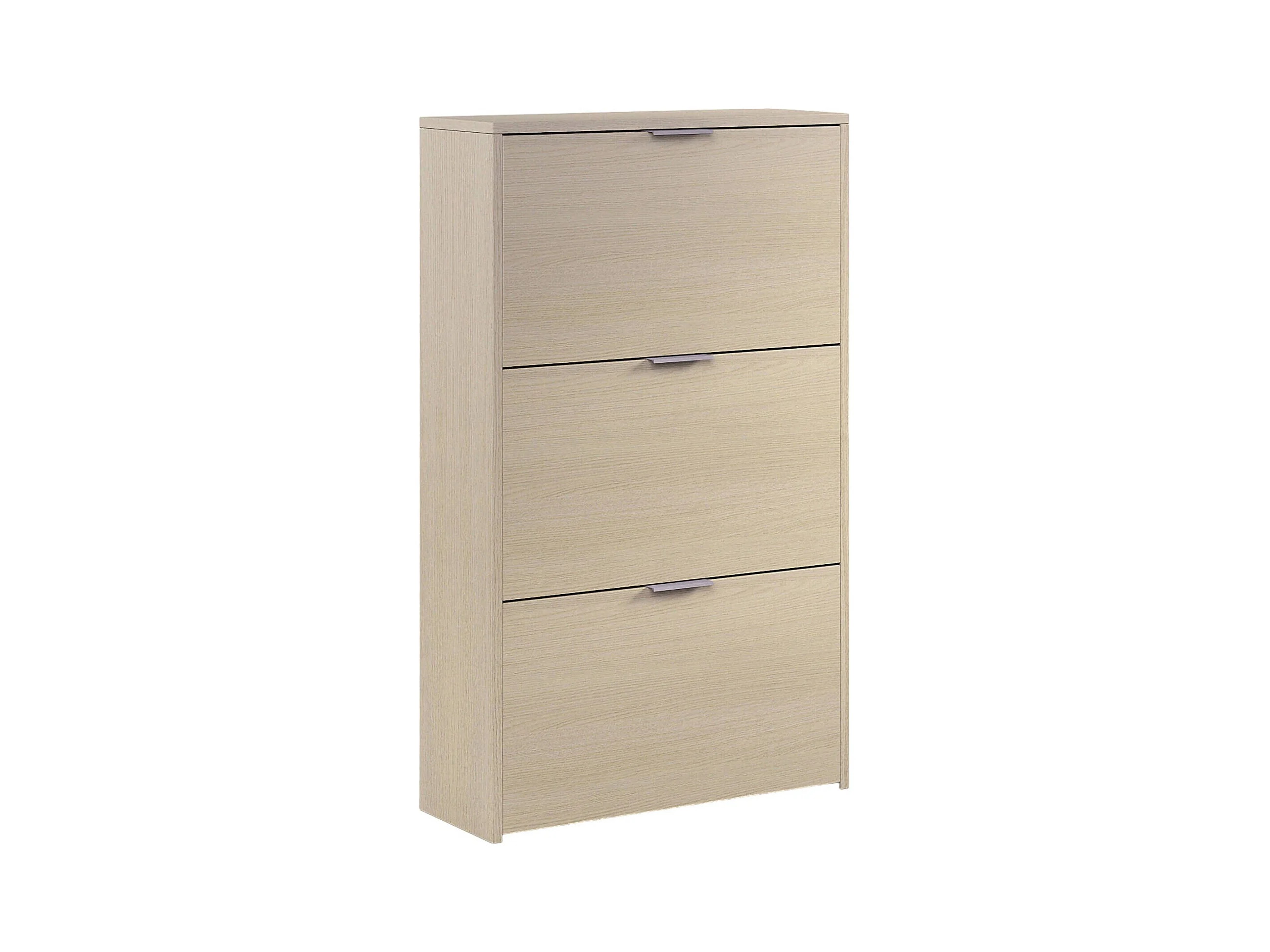 DCosta schoenenrek, Schoenenkast met 3 vouwdeuren, Kast met dubbele capaciteit voor maximaal 18 paar schoenen, 70x17h180 cm, Eiken