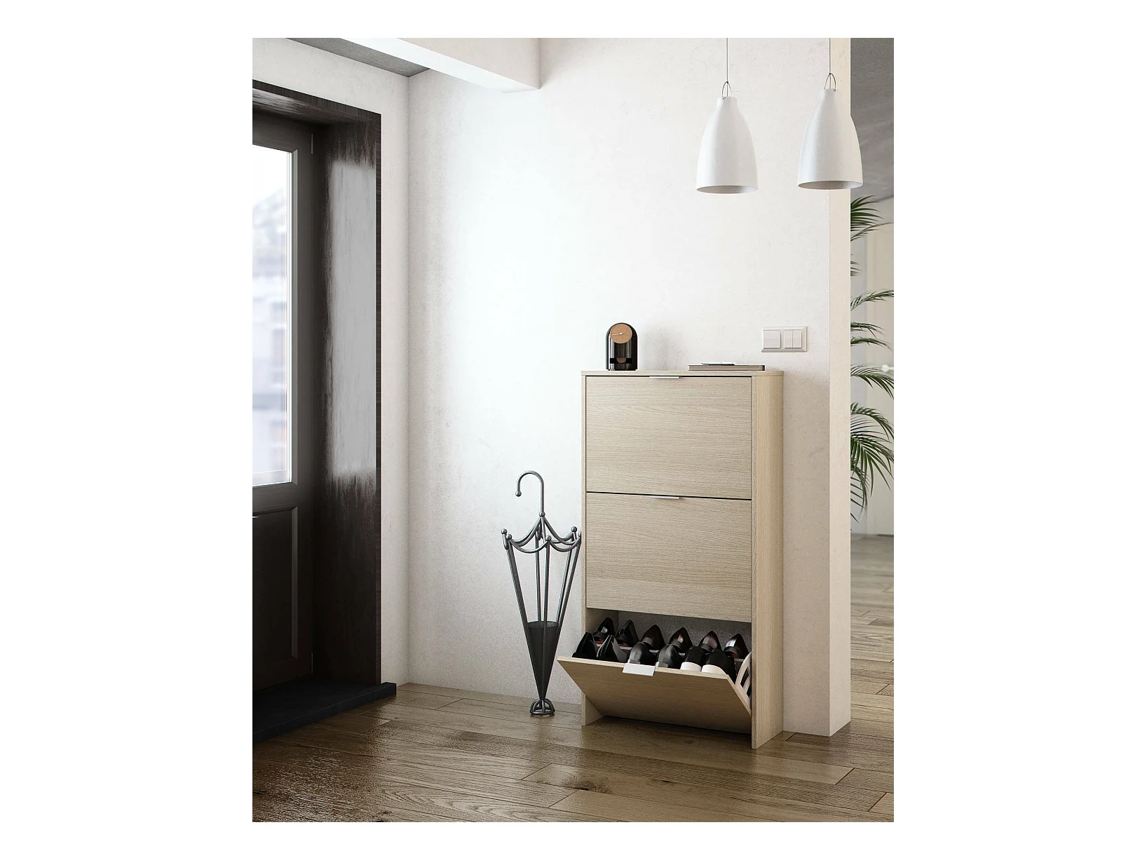 Étagère à chaussures Dferrari, Meuble d'entrée polyvalent avec 3 portes pliantes, Meuble à chaussures moderne, 100% Made in Italy, 67x18h112 cm, Mélèze