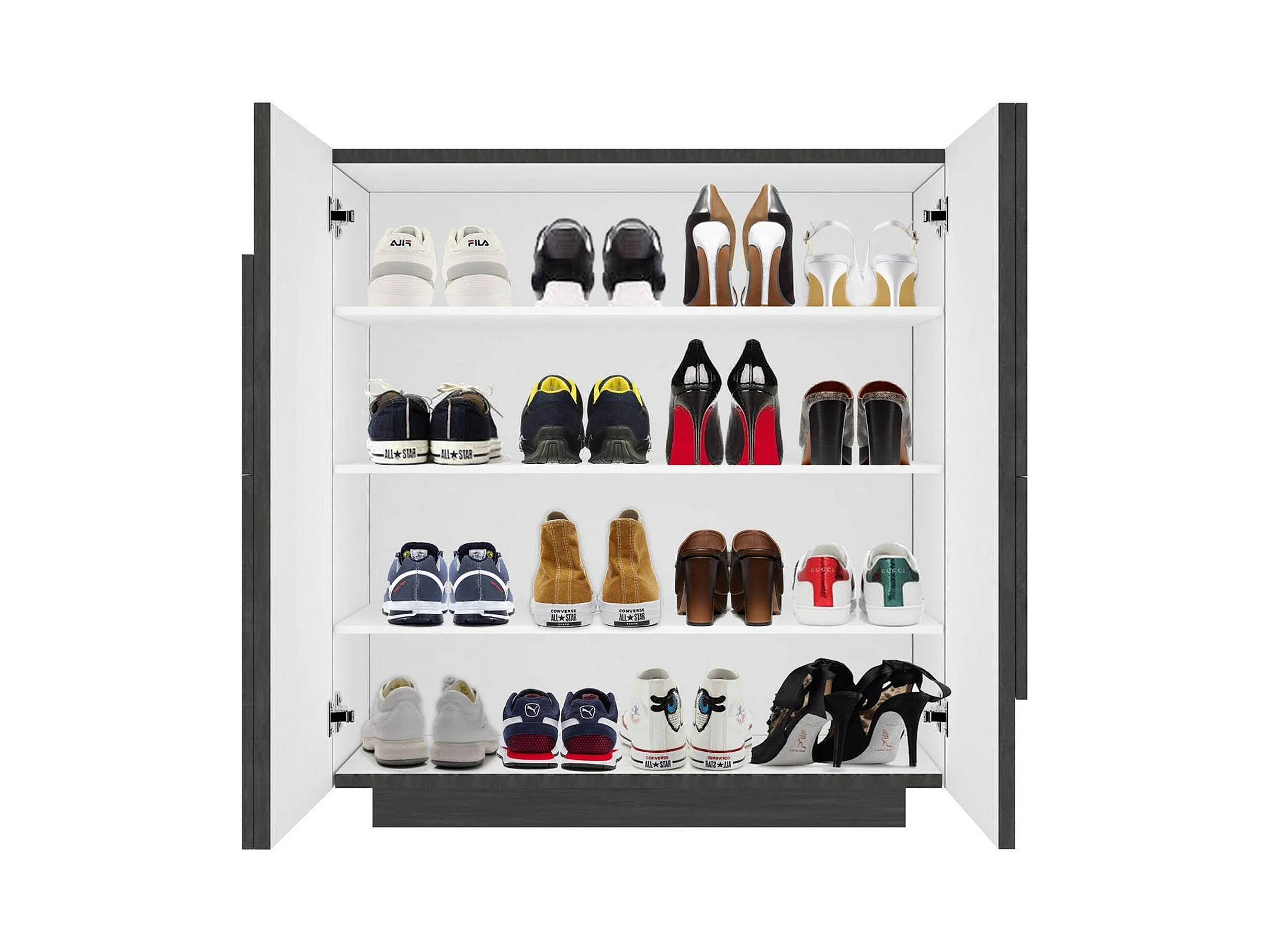 Étagère à chaussures Dfogl, Armoire polyvalente avec 2 portes, Étagère à chaussures d'entrée, 100% Made in Italy, 81x38h86 cm, Ardoise avec détail