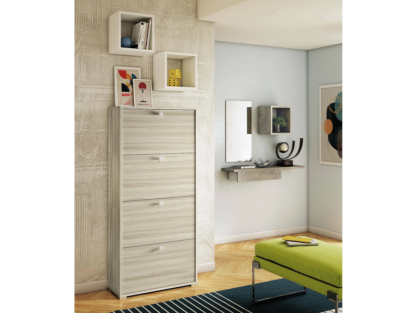 Étagère à chaussures rose, Meuble d'entrée polyvalent avec 4 portes pliantes, Meuble à chaussures double profondeur, 100% Made in Italy, 67x28h147 cm, Olmo