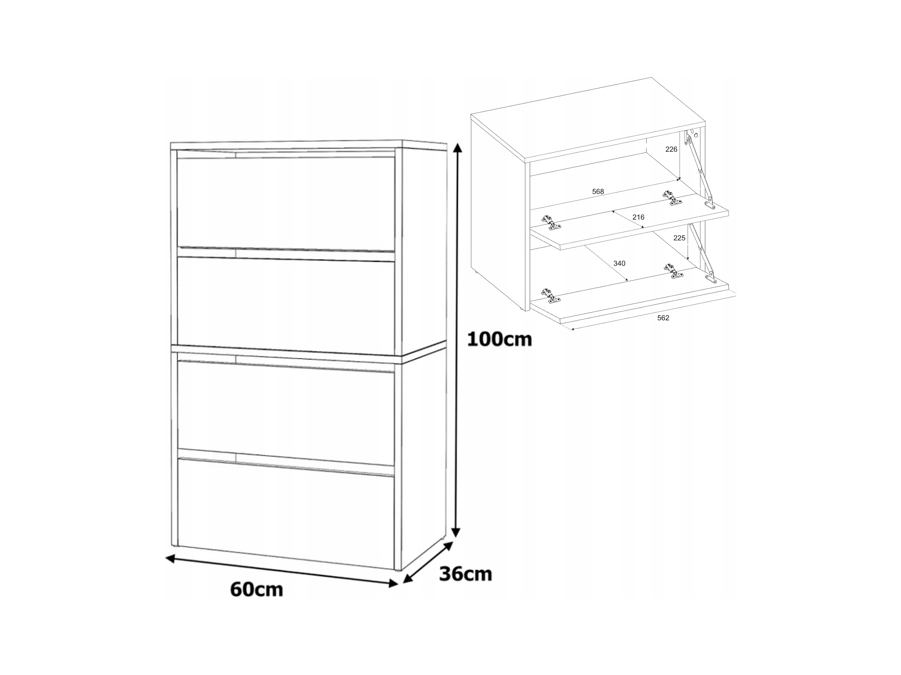 Meuble à Chaussures 60x36x50 cm Noir Chêne Wotan 5paires– Petit Rangement Étagère pour Entrée