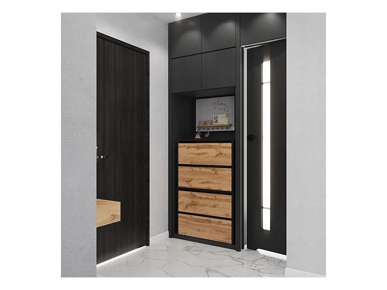 Meuble à chaussures - 2 tiroirs + 4 portes + compartiment ouvert - Noir
