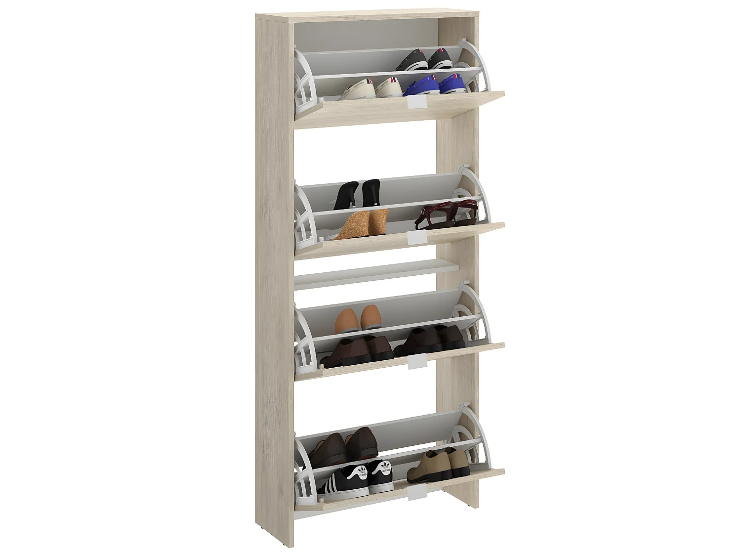 Meuble à chaussures en panneaux de particules mélaminés coloris chêne naturel - Longueur 60.9 x Profondeur 25.2 x Hauteur 149 cm