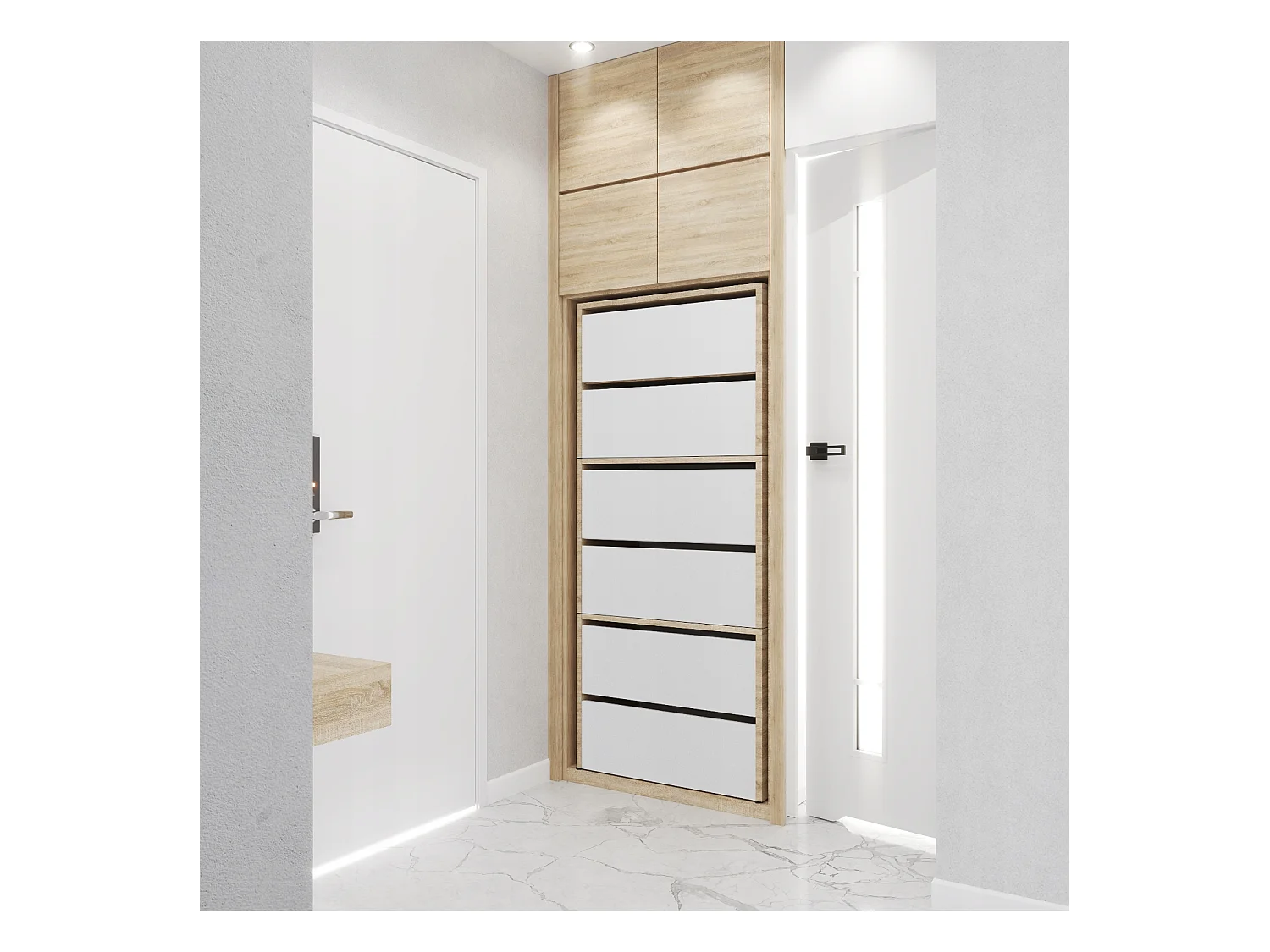 Meuble à Chaussures Étroit Blanc+ Chêne Sonoma 60x36x150cm – Étagère Rangement Entrée