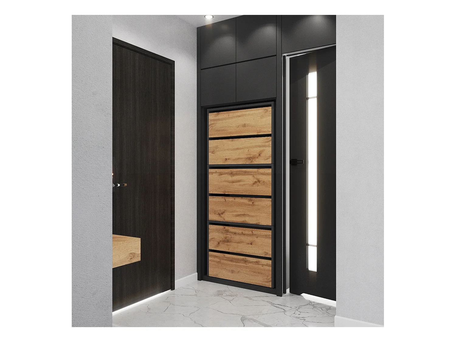 Meuble à Chaussures Étroit Gris Chêne Wotan 60x36x150cm – Étagère Rangement Entrée