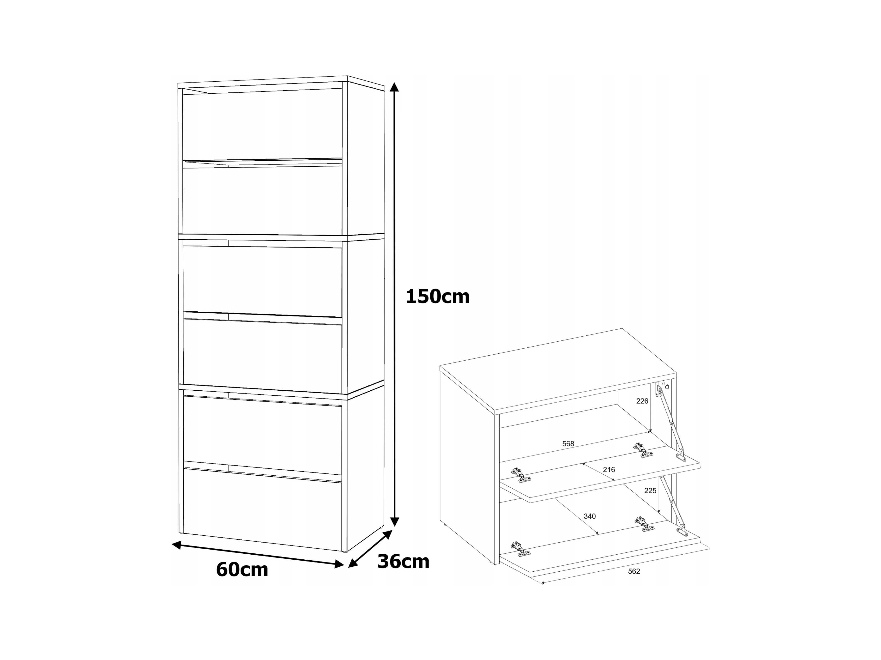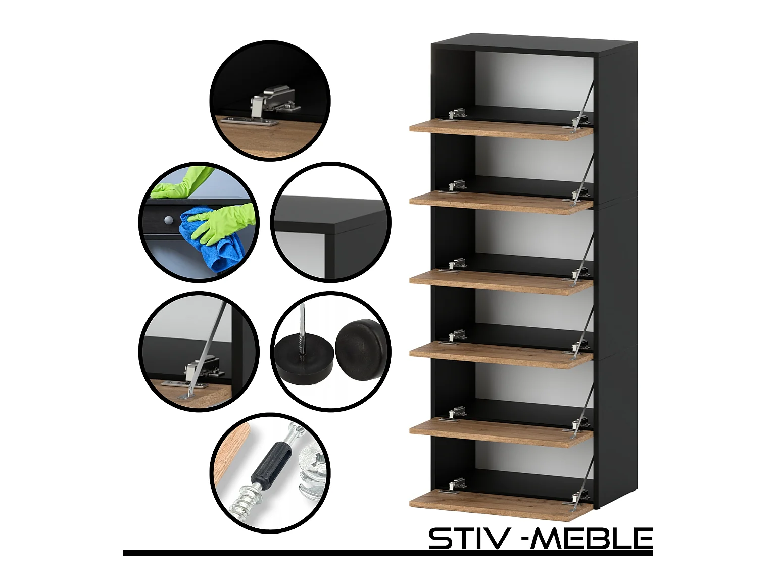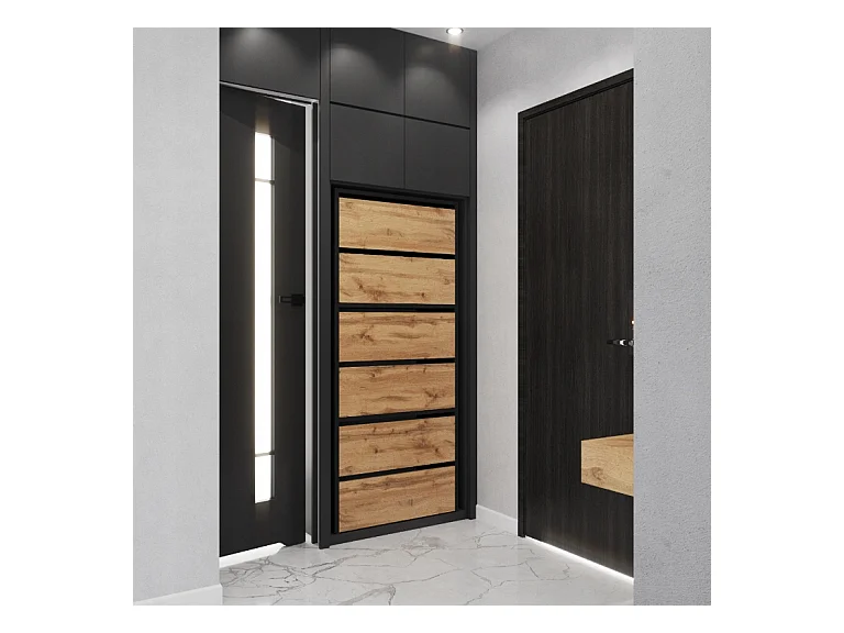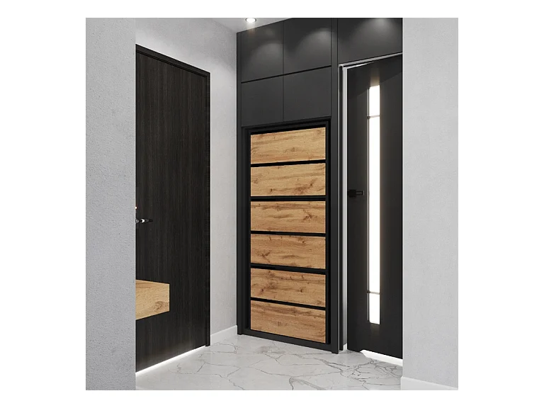 Meuble à Chaussures Étroit Noir Chêne Wotan 60x36x150cm 15 paires – Étagère Rangement Entrée