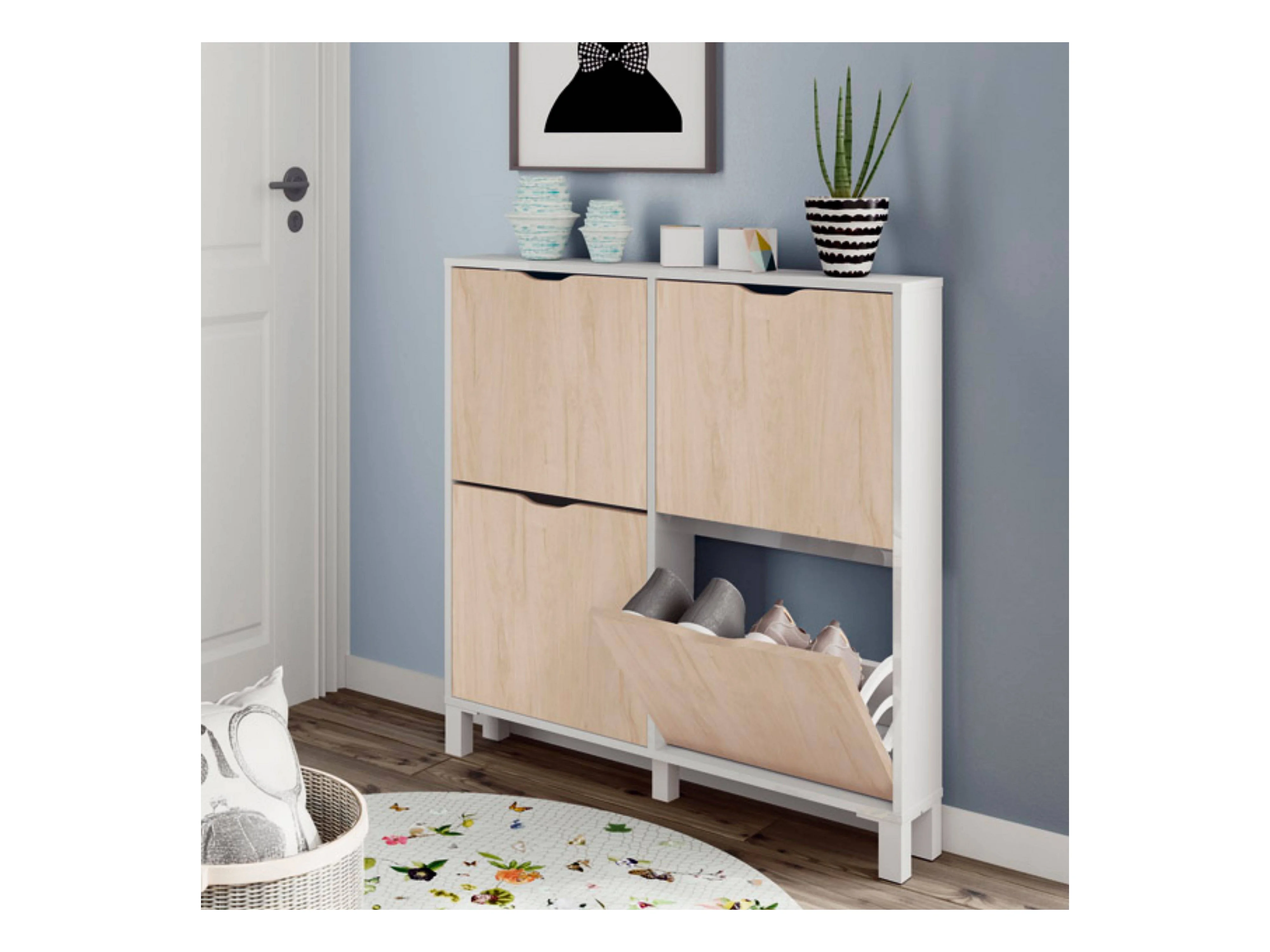 Meuble à chaussures étroit pour couloir en chêne blanc Mary 98 x 97 x 17 cm