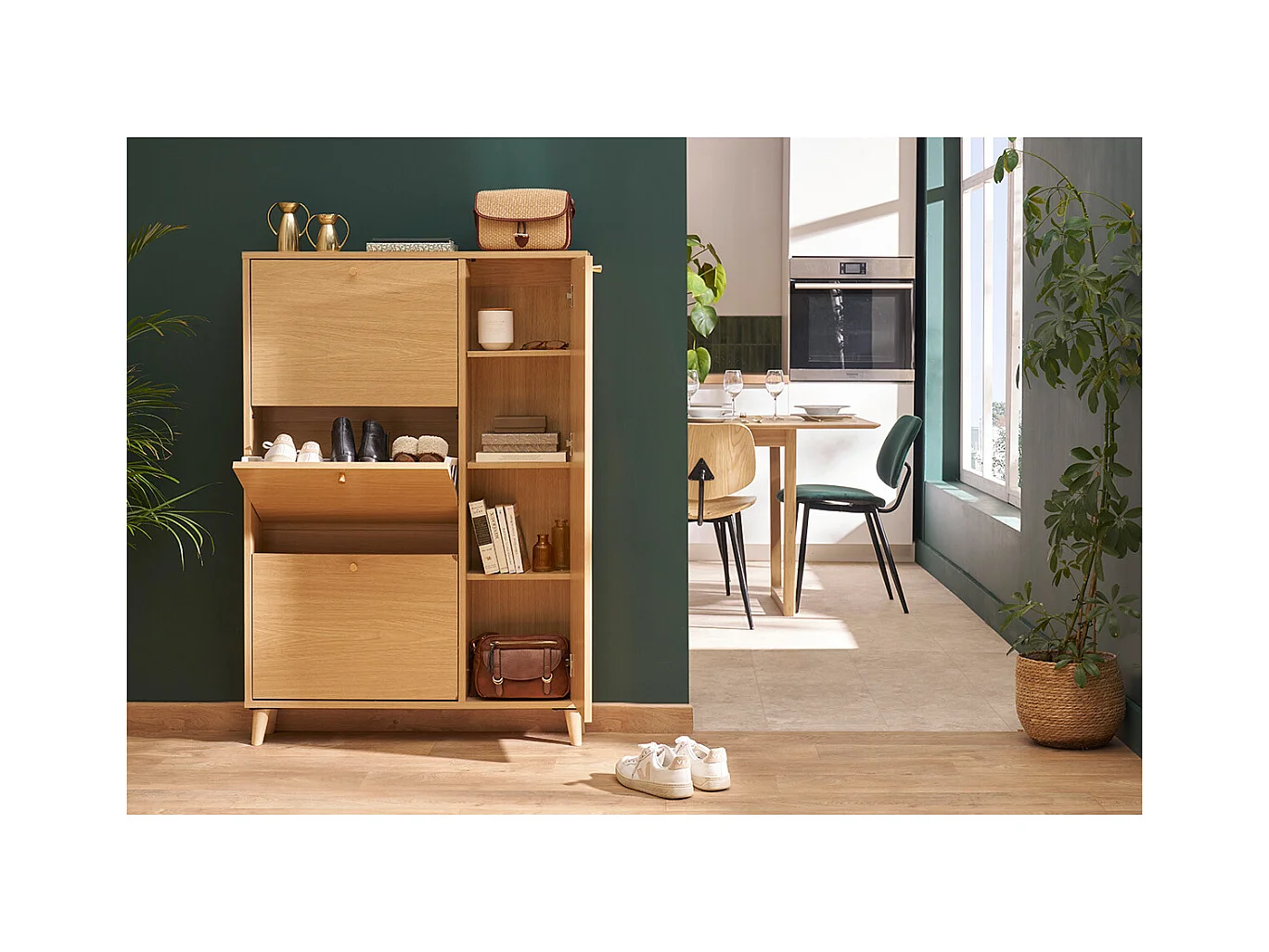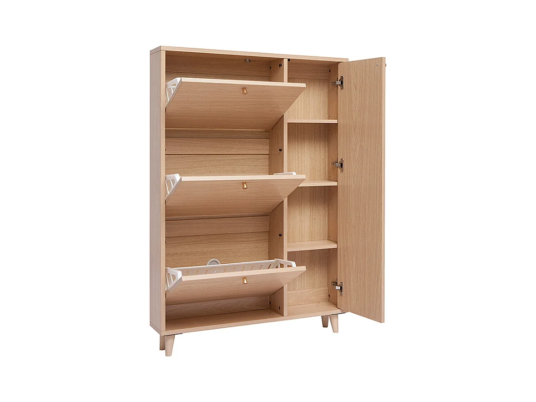 Meuble à chaussures finition bois clair chêne et métal doré L90 cm SILVESTRE