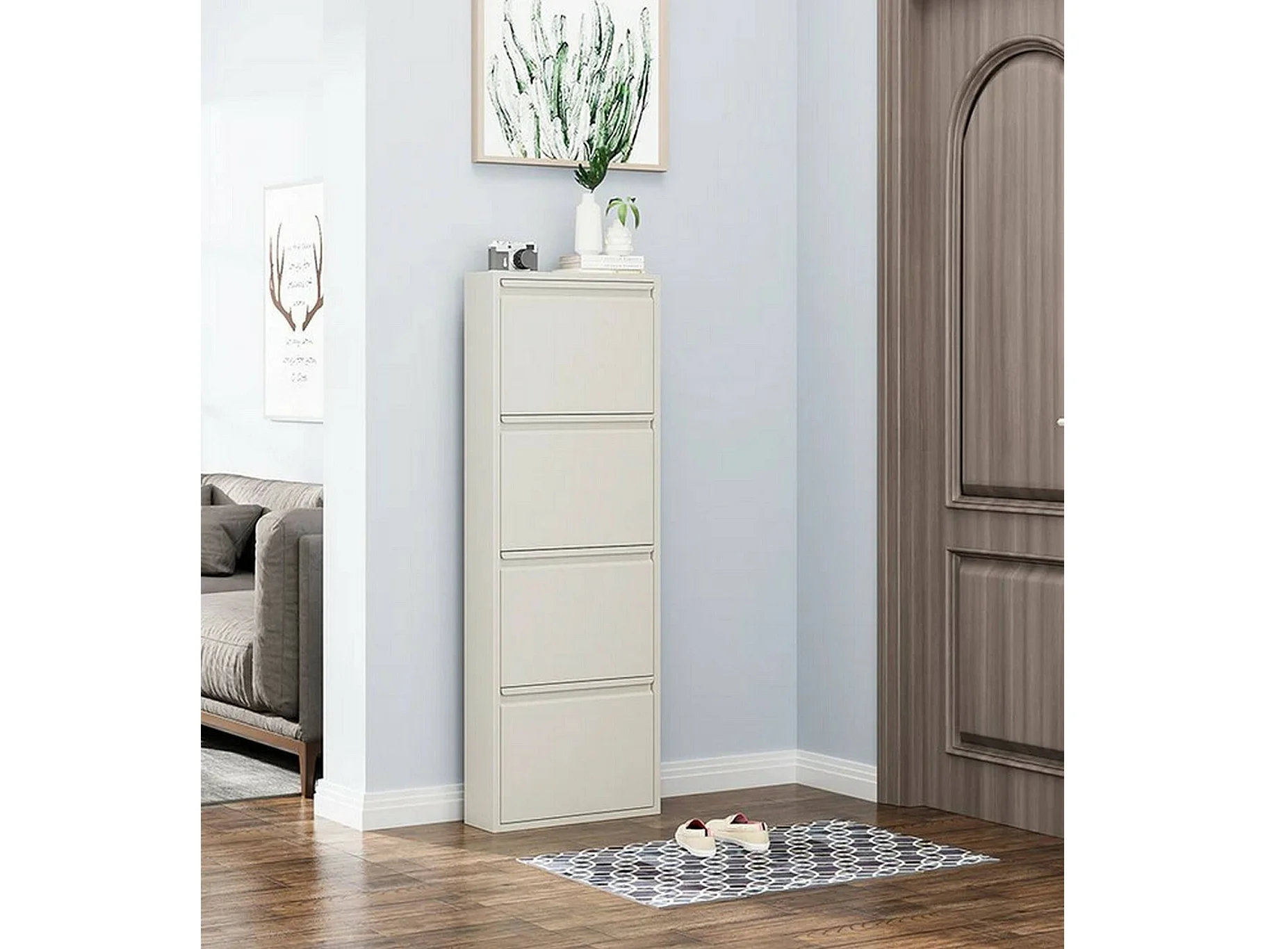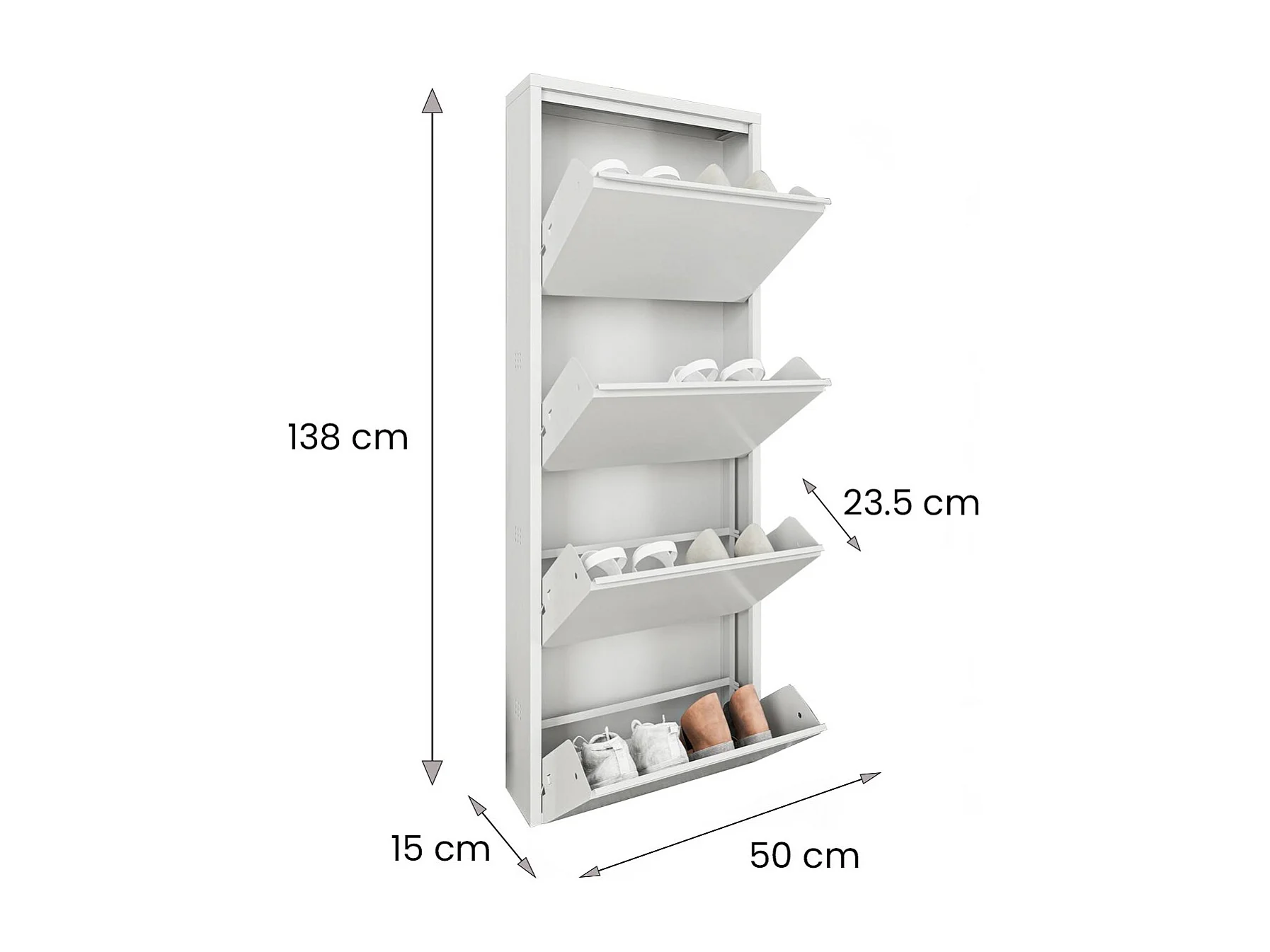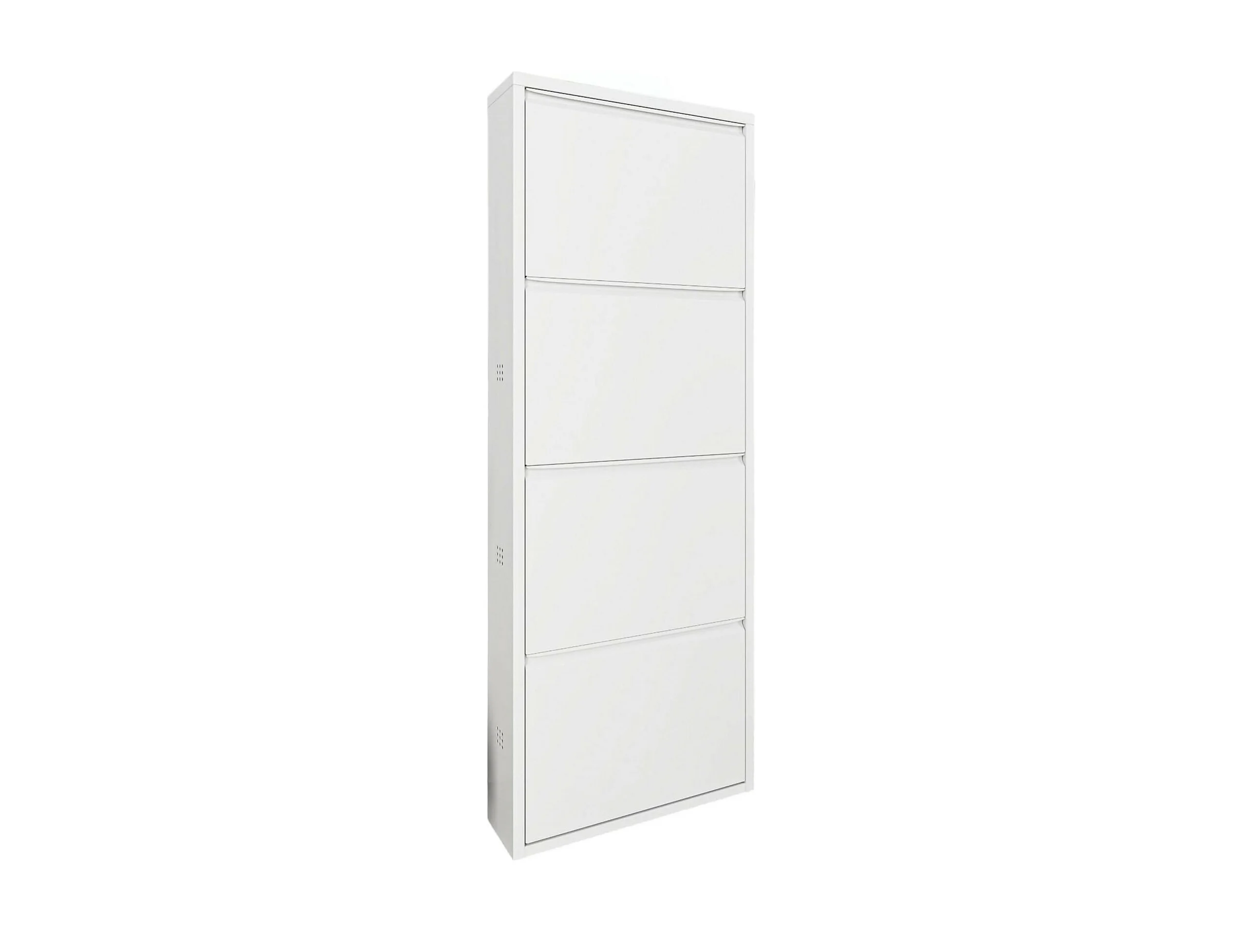 Pisa Armoire à chaussures à 5 rabats/portes en métal, blanc.