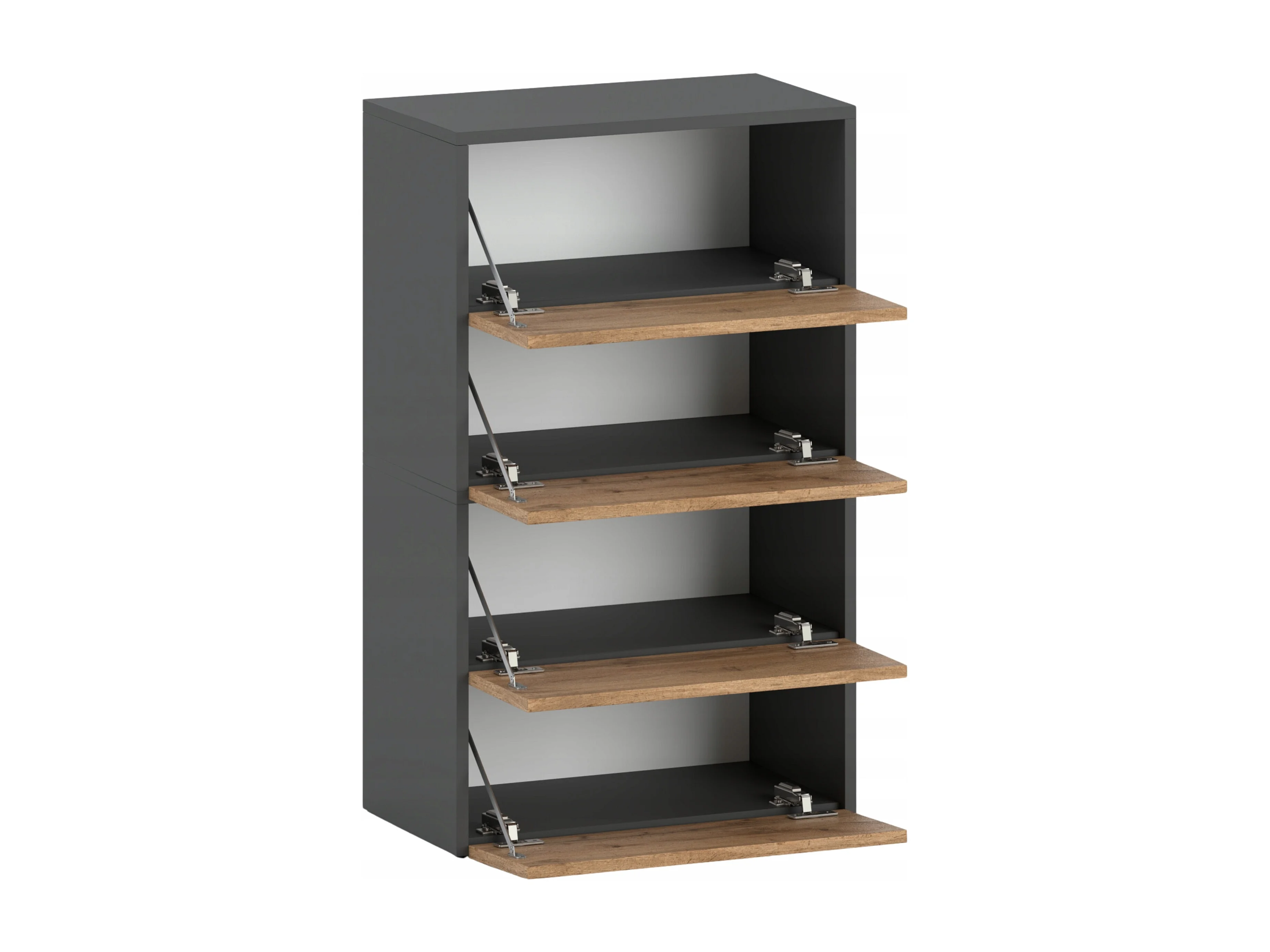 Motala | Coffre à chaussures à 2 portes battantes et 1 tiroir en anthraciteRangement pour chaussures avec 2 portes à rabat et 1 tiroir en pin anthracite
