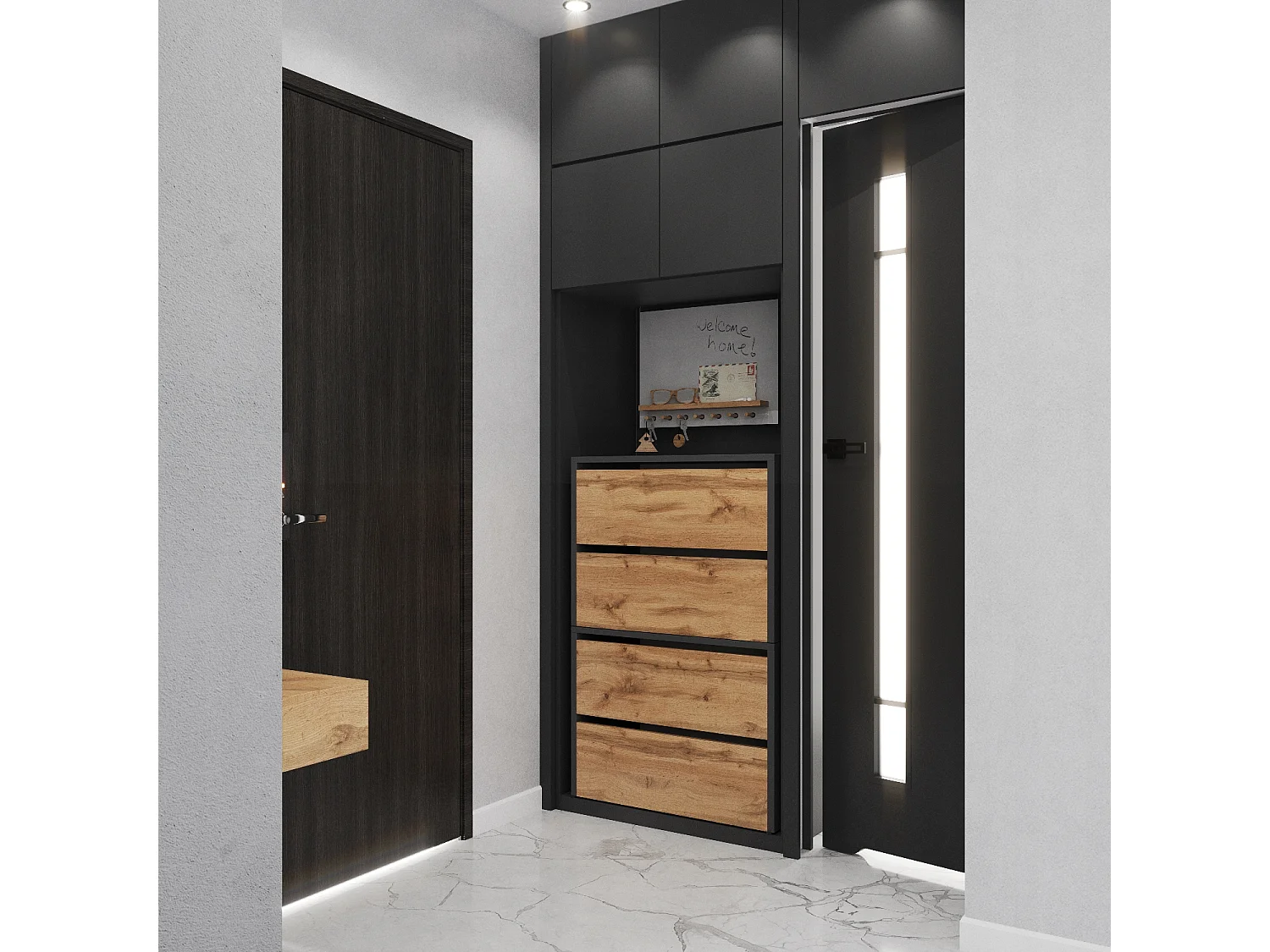 Meuble à Chaussures, 167x35x145 cm, Chambre à coucher, pièce, Cheminée électrique XXL, Panneaux Muraux en Bois, Ciment