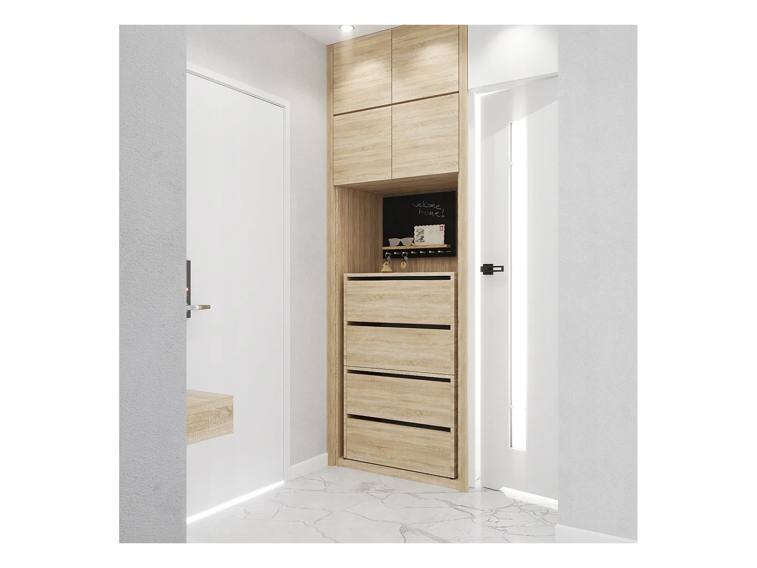 Meuble à chaussures AKORD RUBIN Chêne Sonoma 66 cm 4 portes façade Chêne Sonoma 4 étagères 66x36x85 cm