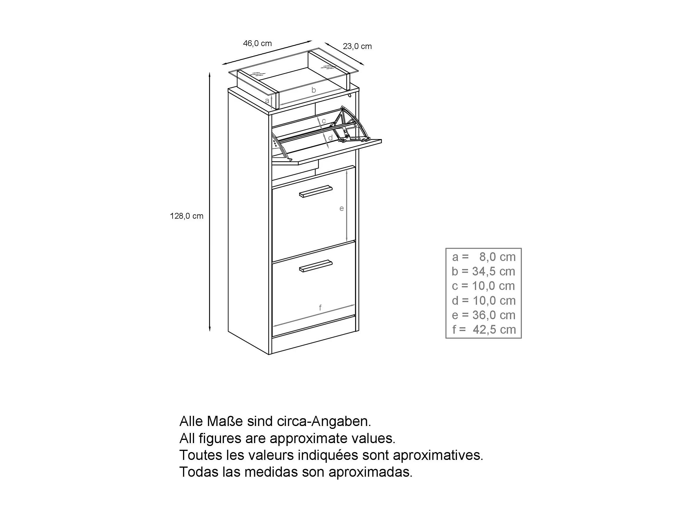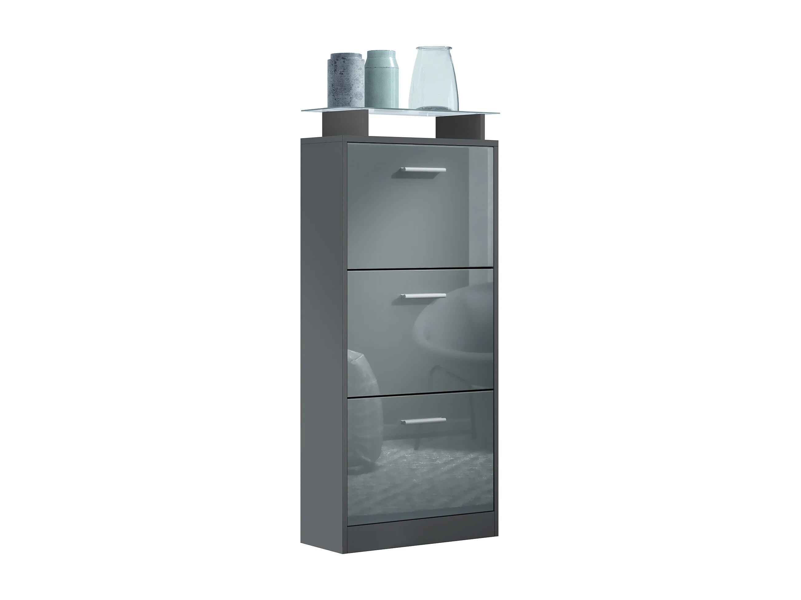 Meuble à Chaussures Lavia V2, Range-Chaussures pour 12 Paires avec 3 Abattants et Étagère en Verre, anthracite mat/gris haute brillance (46 x 128 x 23 cm)