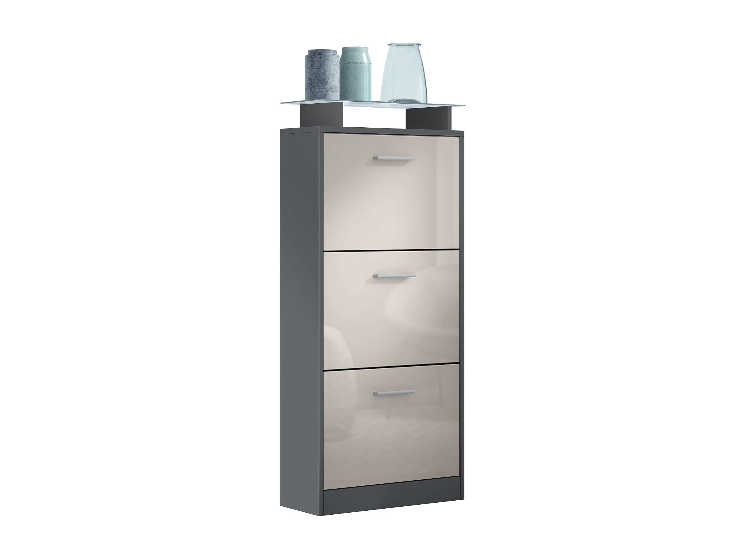 Meuble à Chaussures Lavia V2, Range-Chaussures pour 12 Paires avec 3 Abattants et Étagère en Verre, anthracite mat/gris sable brillant (46 x 128 x 23 cm)