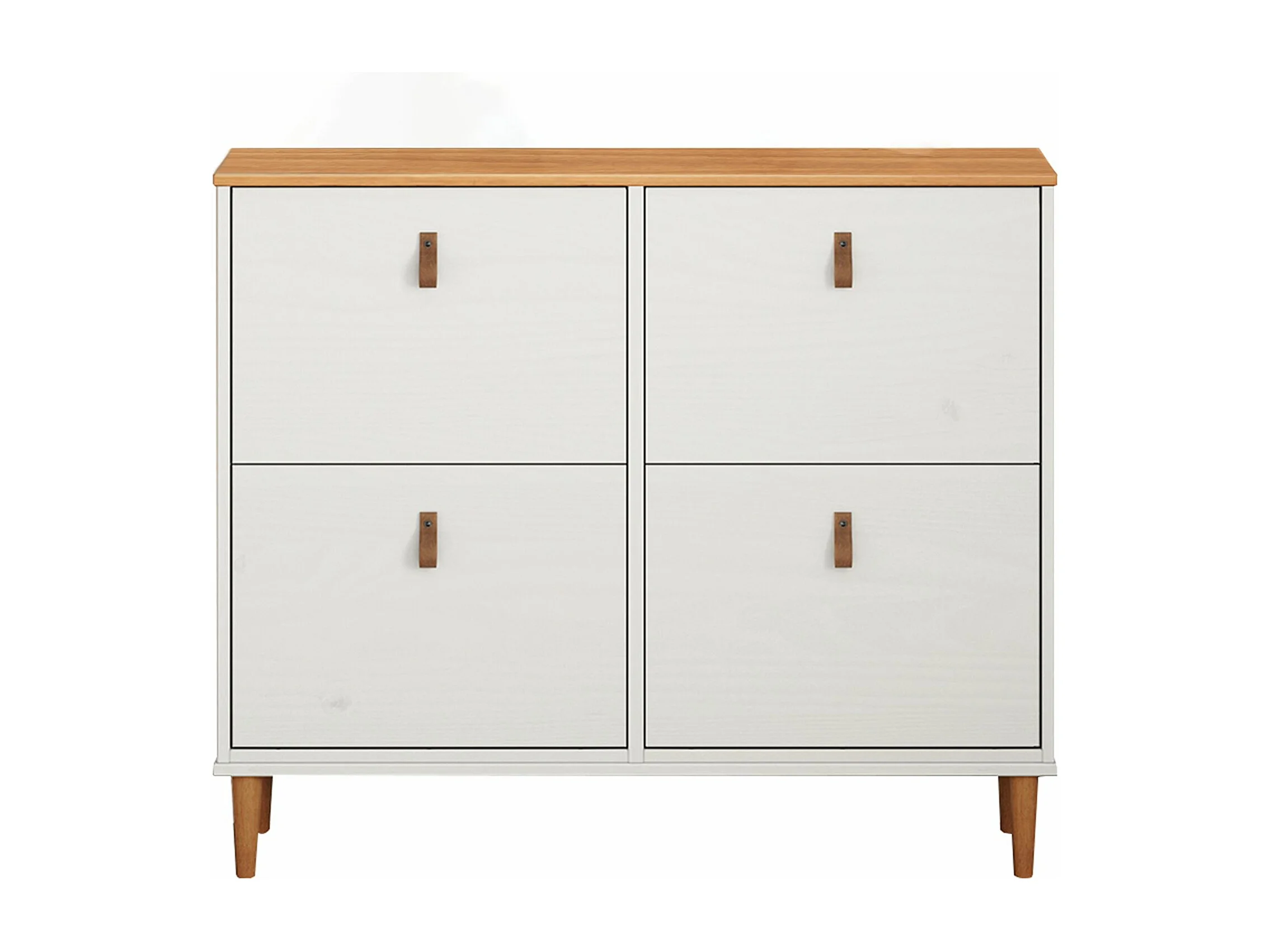 Meuble à chaussures MIKKA en bois, étagère à chaussures bois, rangement avec 4 abattants en pin massif blanc/chêne