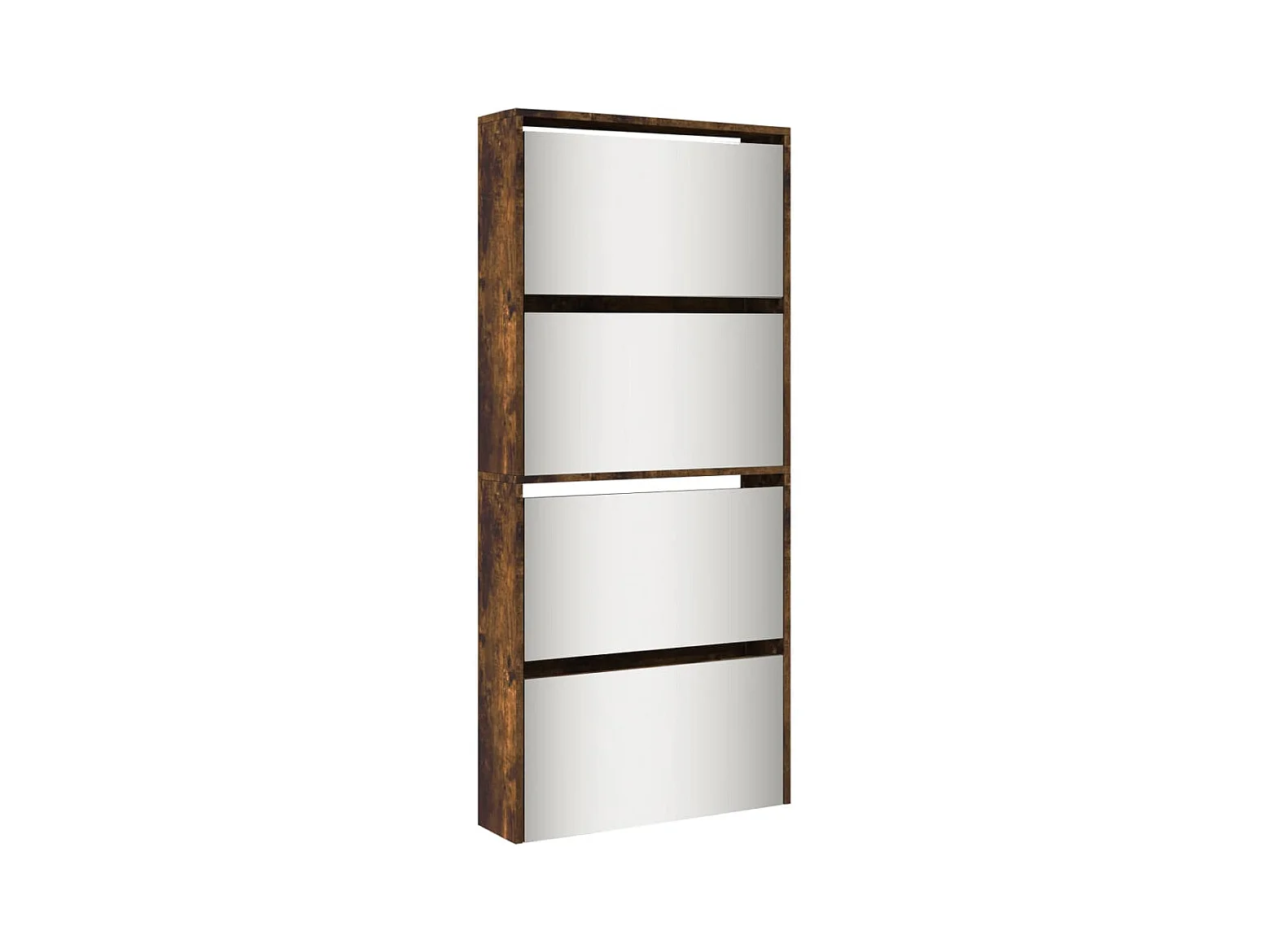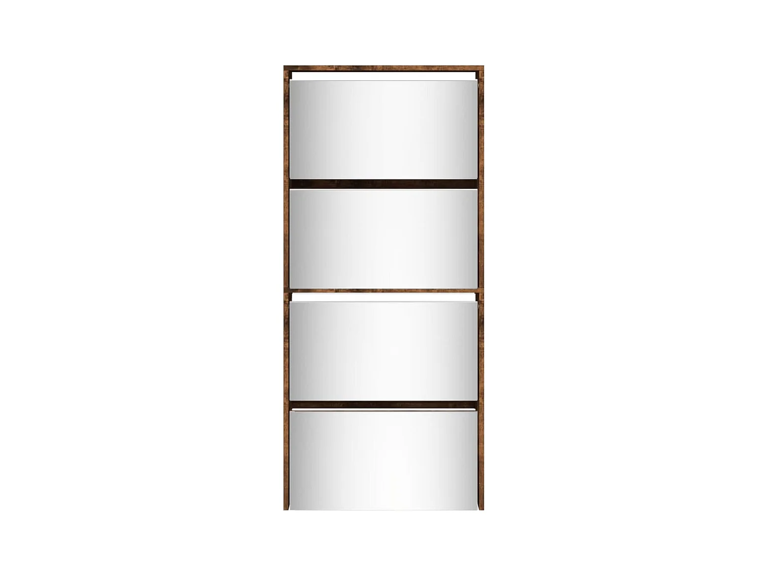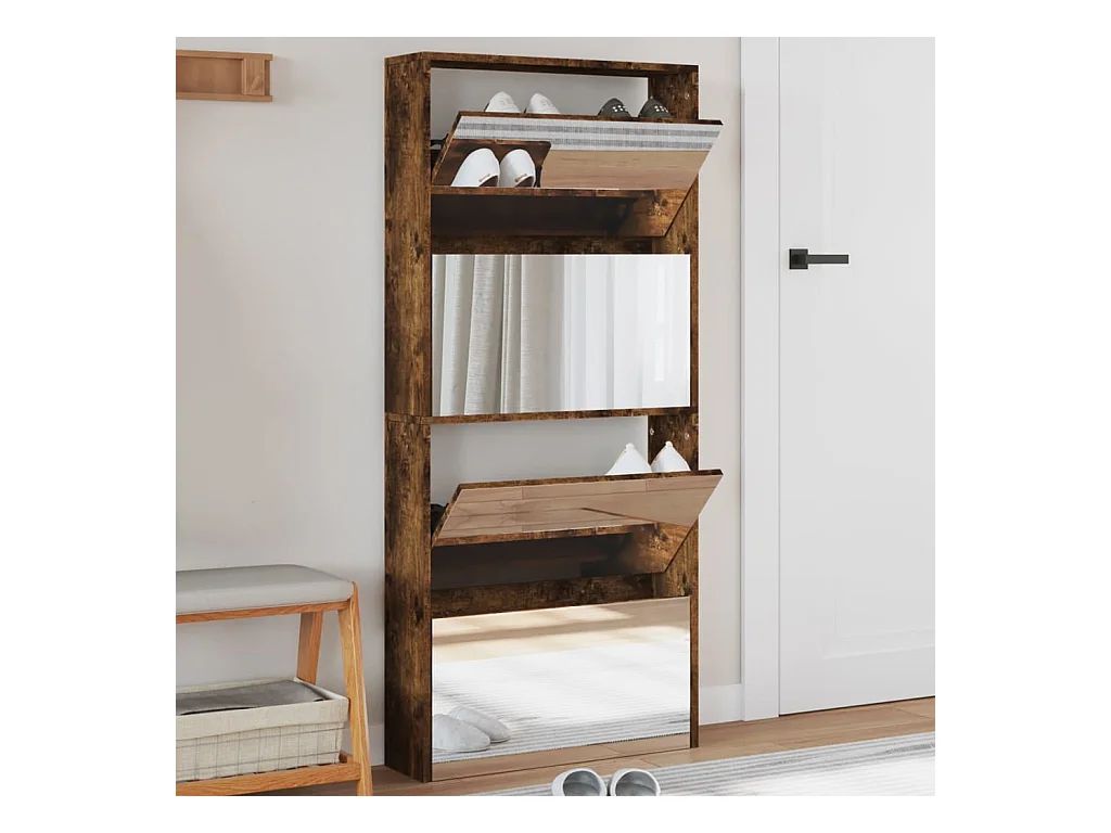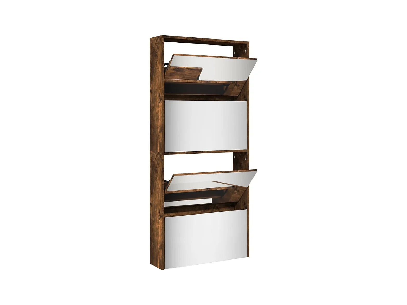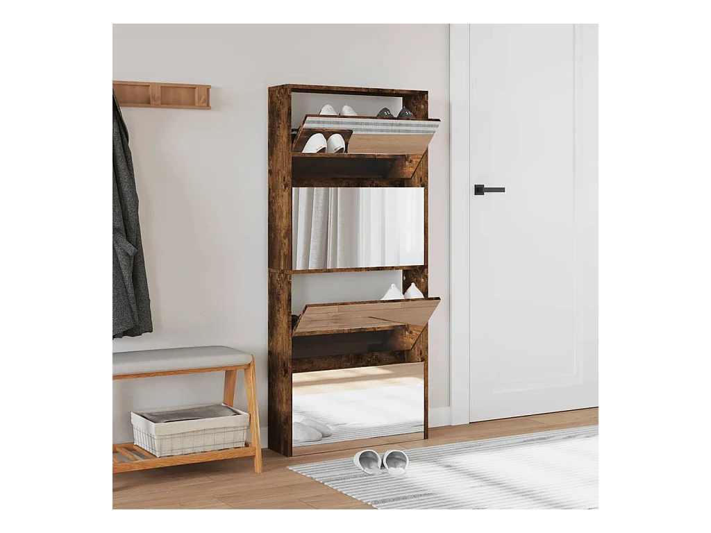 Meuble à chaussures miroir à 4 niveaux chêne fumé 63x17x134 cm FR96793