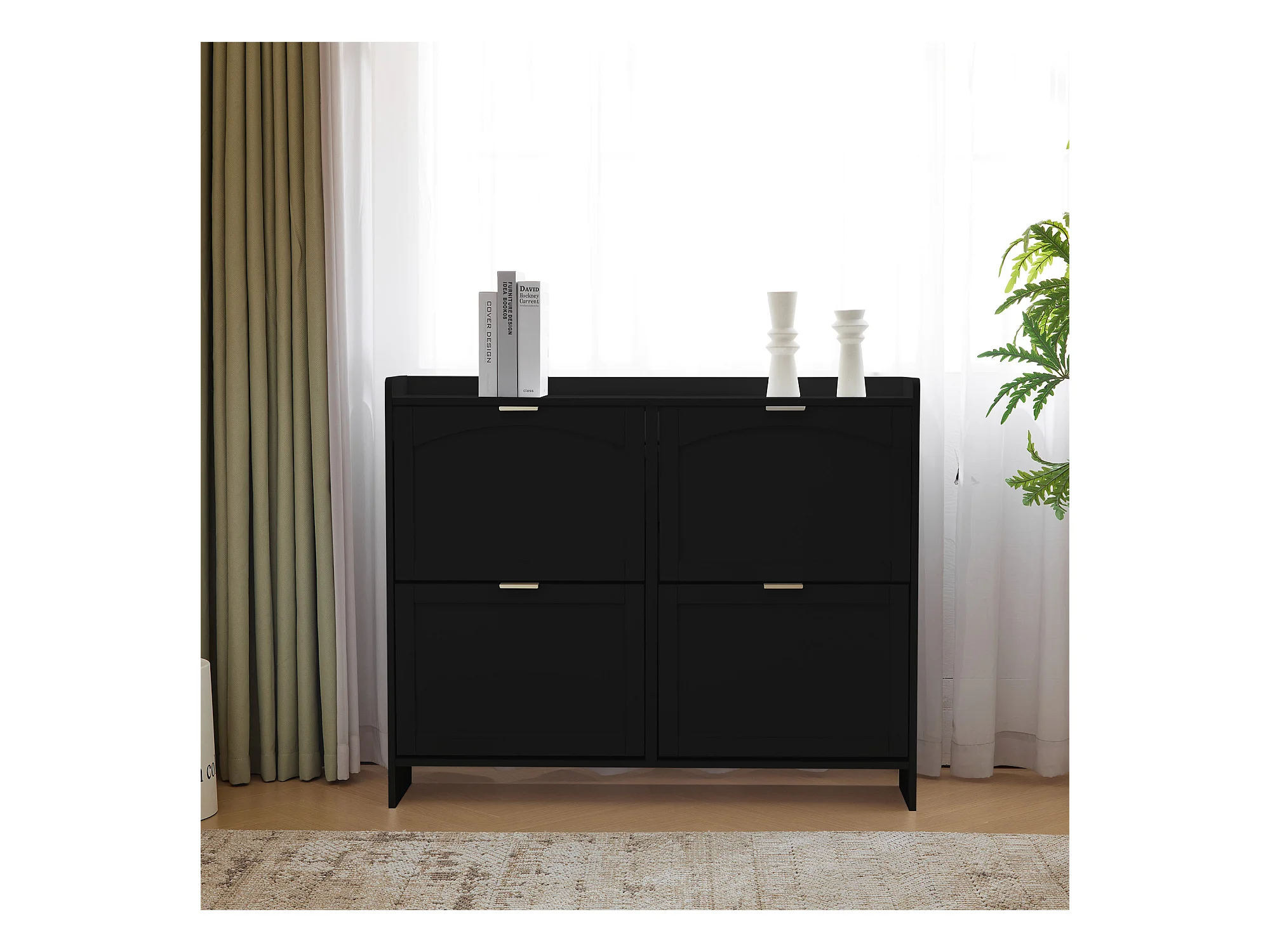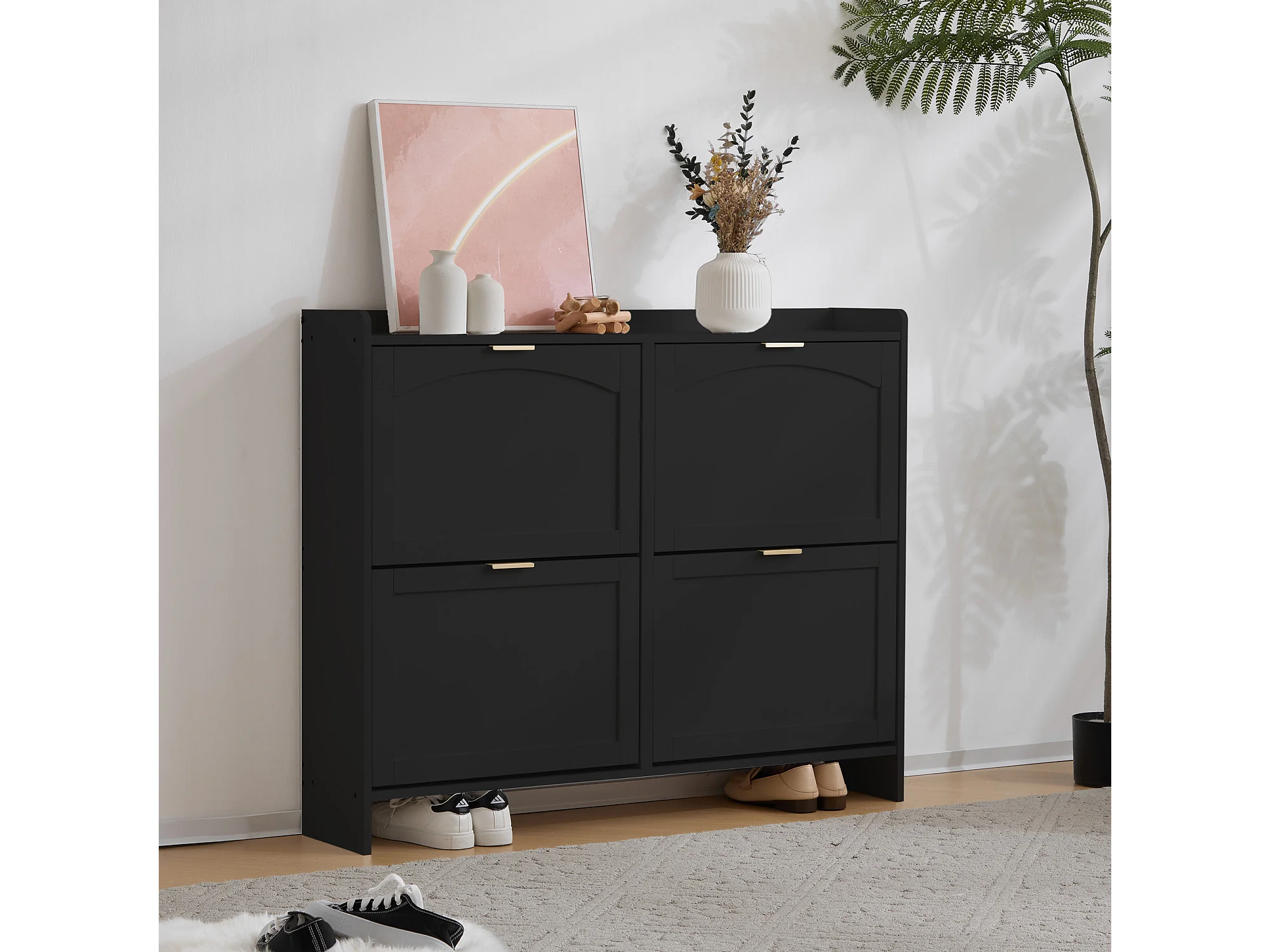 Meuble à chaussures moderne avec 4 rangement à rabat - 100 x 24 x 90 cm - aggloméré - noir