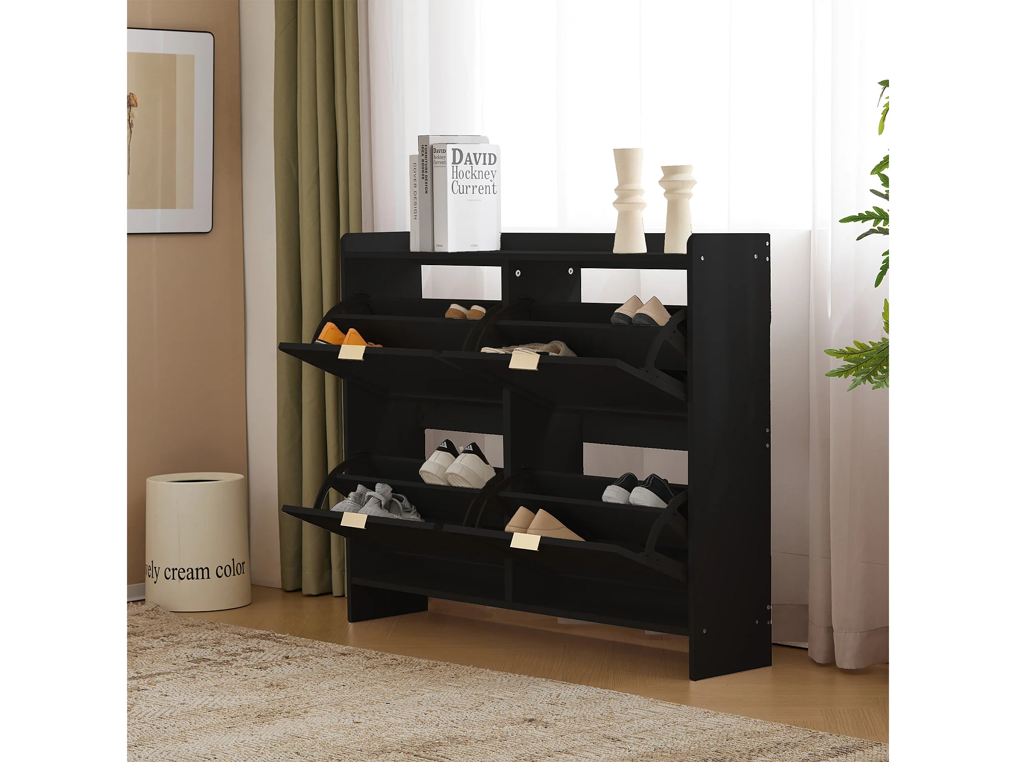 Meuble à chaussures moderne - 4 compartiments abattants - Noir
