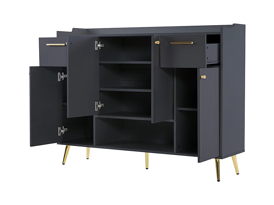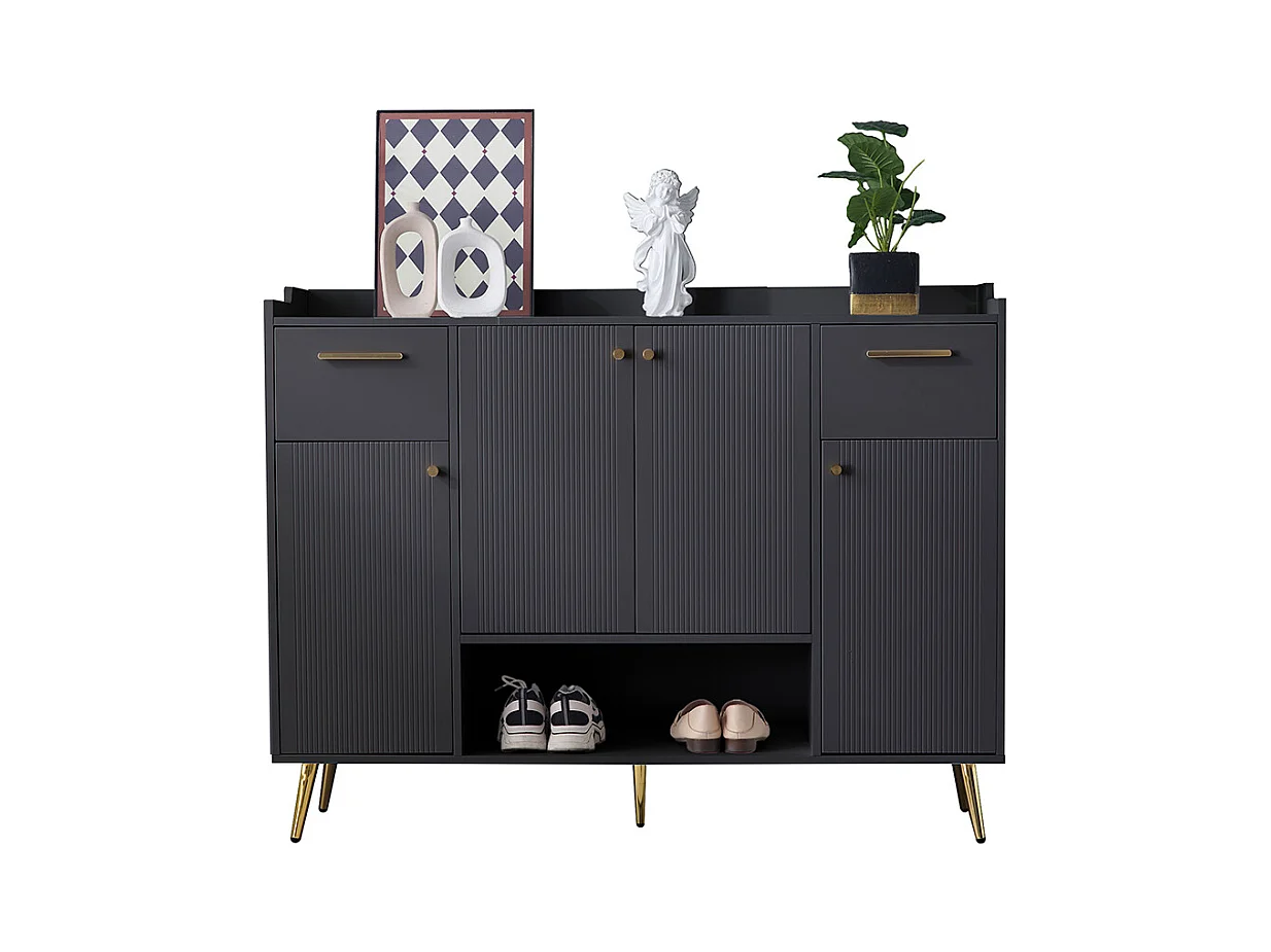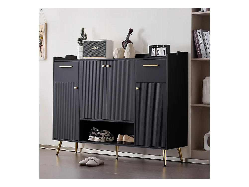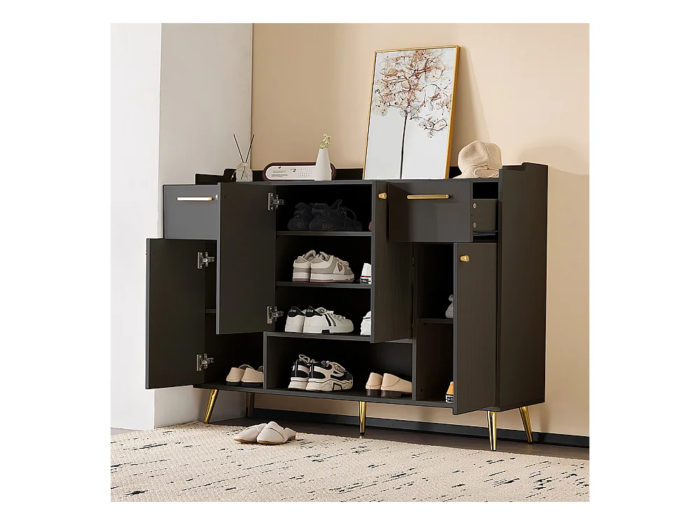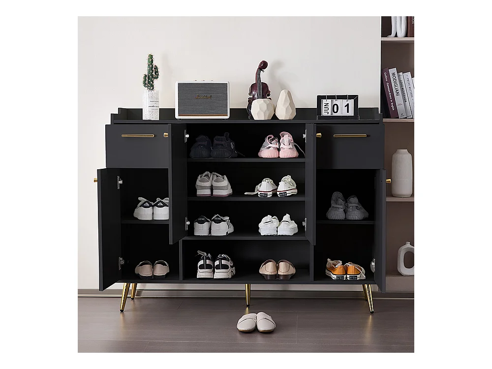 Meuble à chaussures noir 2 tiroirs 4 portes étagère pieds métal