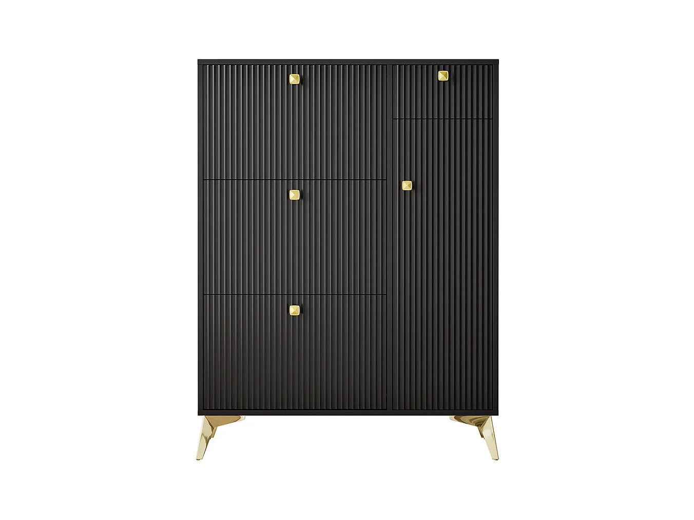 Meuble à chaussures avec 3 tiroirs rabattables et 1 porte, noir, MDF (90x25x121 cm)
