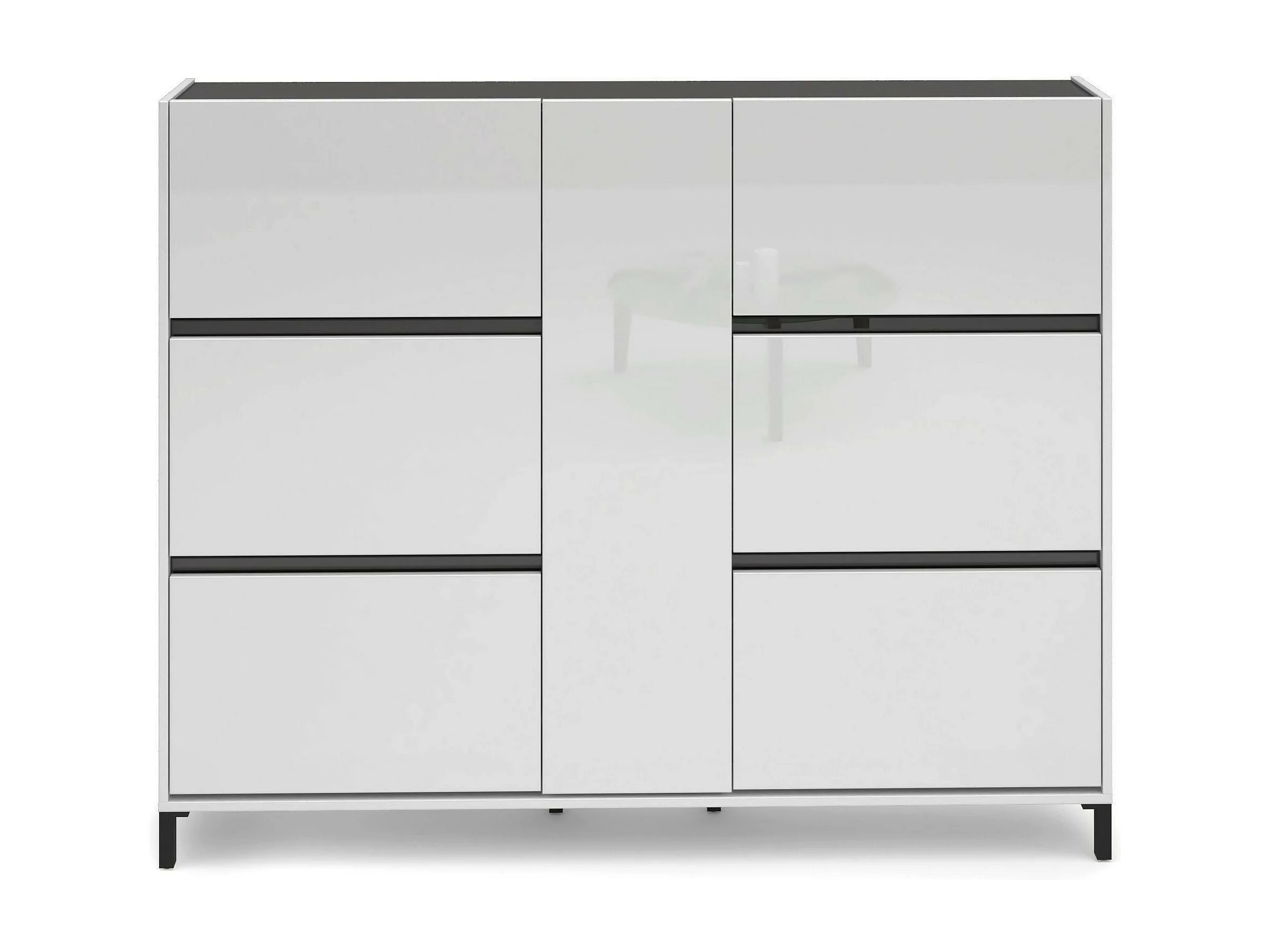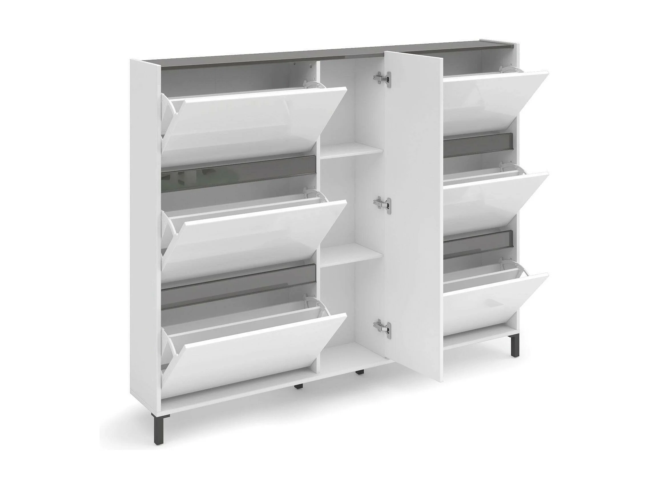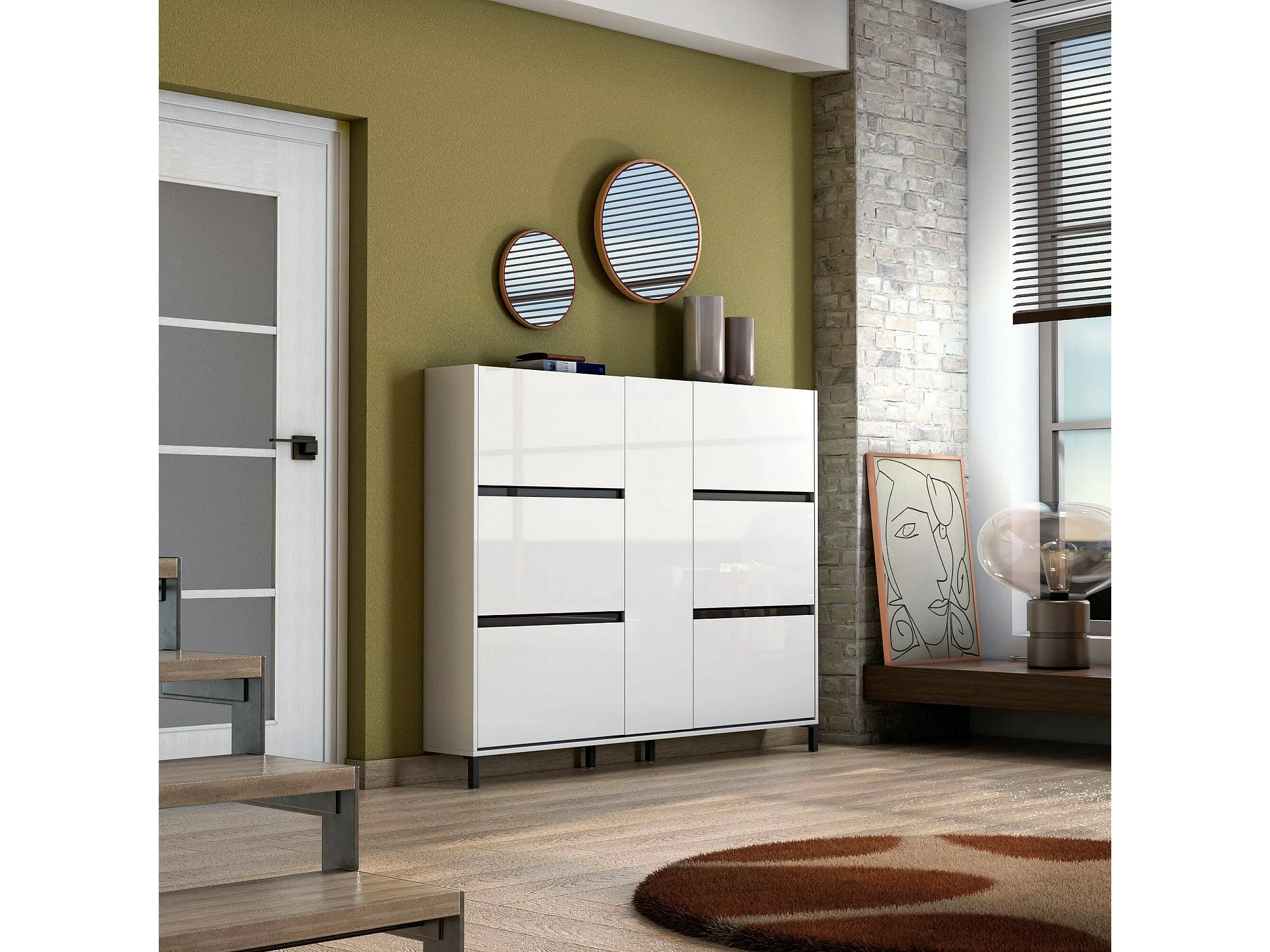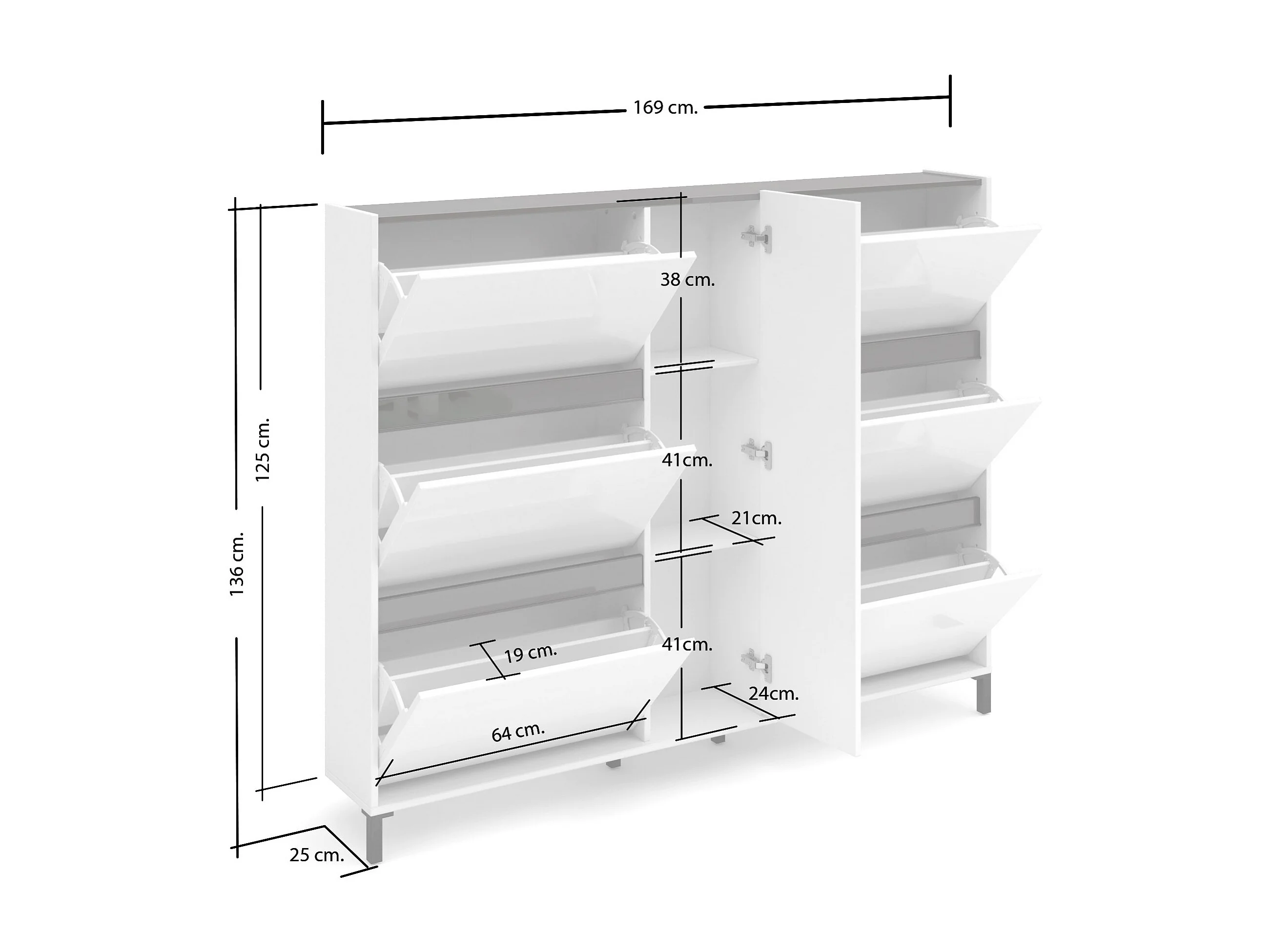 Meuble à chaussures Praia, Meuble à chaussures, Armoire d'entrée polyvalente, Rangement pour chaussures, Made in Italy, 169x25h136 cm, Blanc brillant