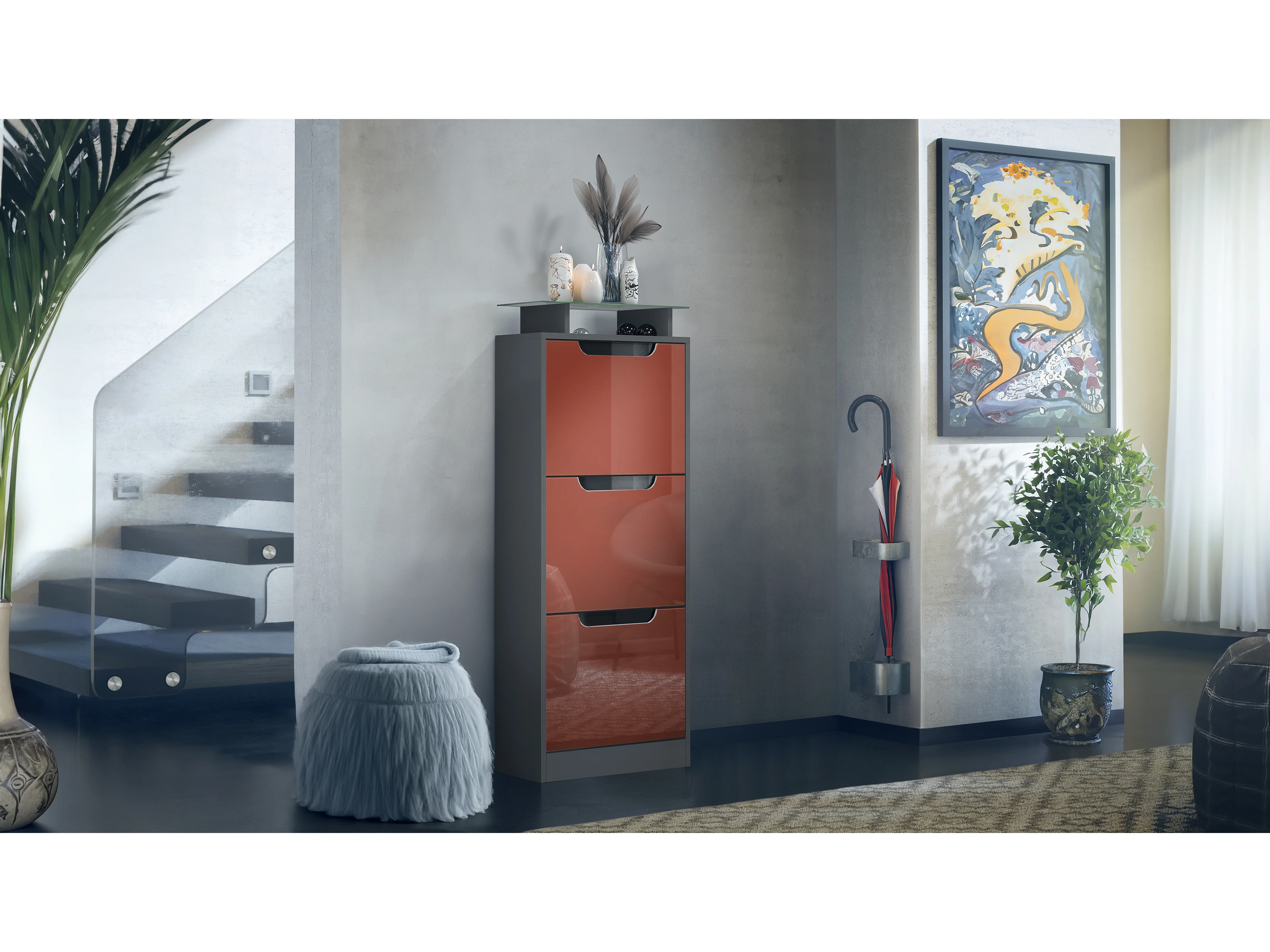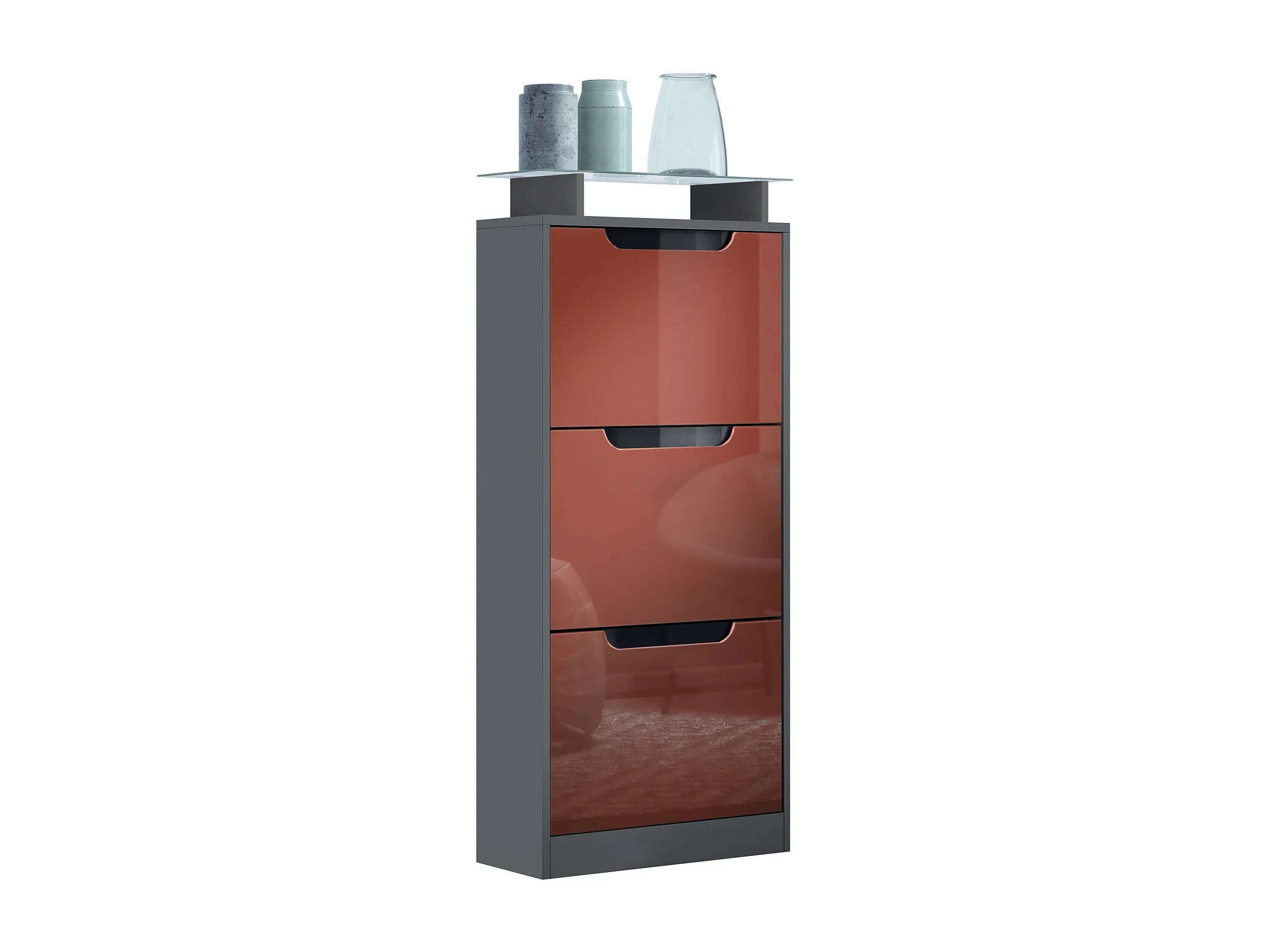 Meuble à chaussures Space V2, Range-chaussures pour 12 paires de chaussures avec 3 abattants, anthracite mat/bordeaux brillant (46x128x23 cm)