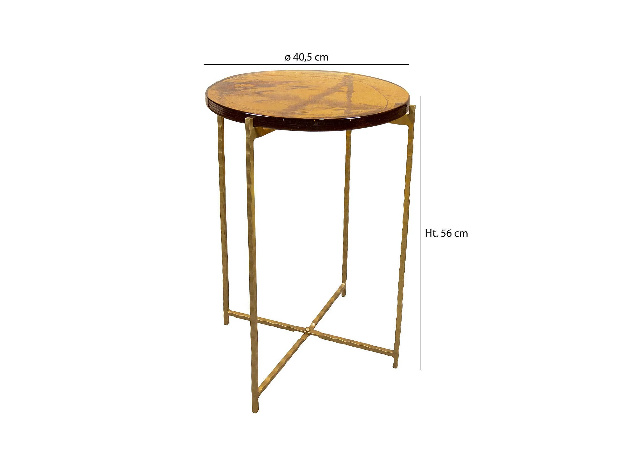 Now's Home - Meuble Appoint En Metal Dore Plateau En Verre Ambre 40.5xh56cm Belli