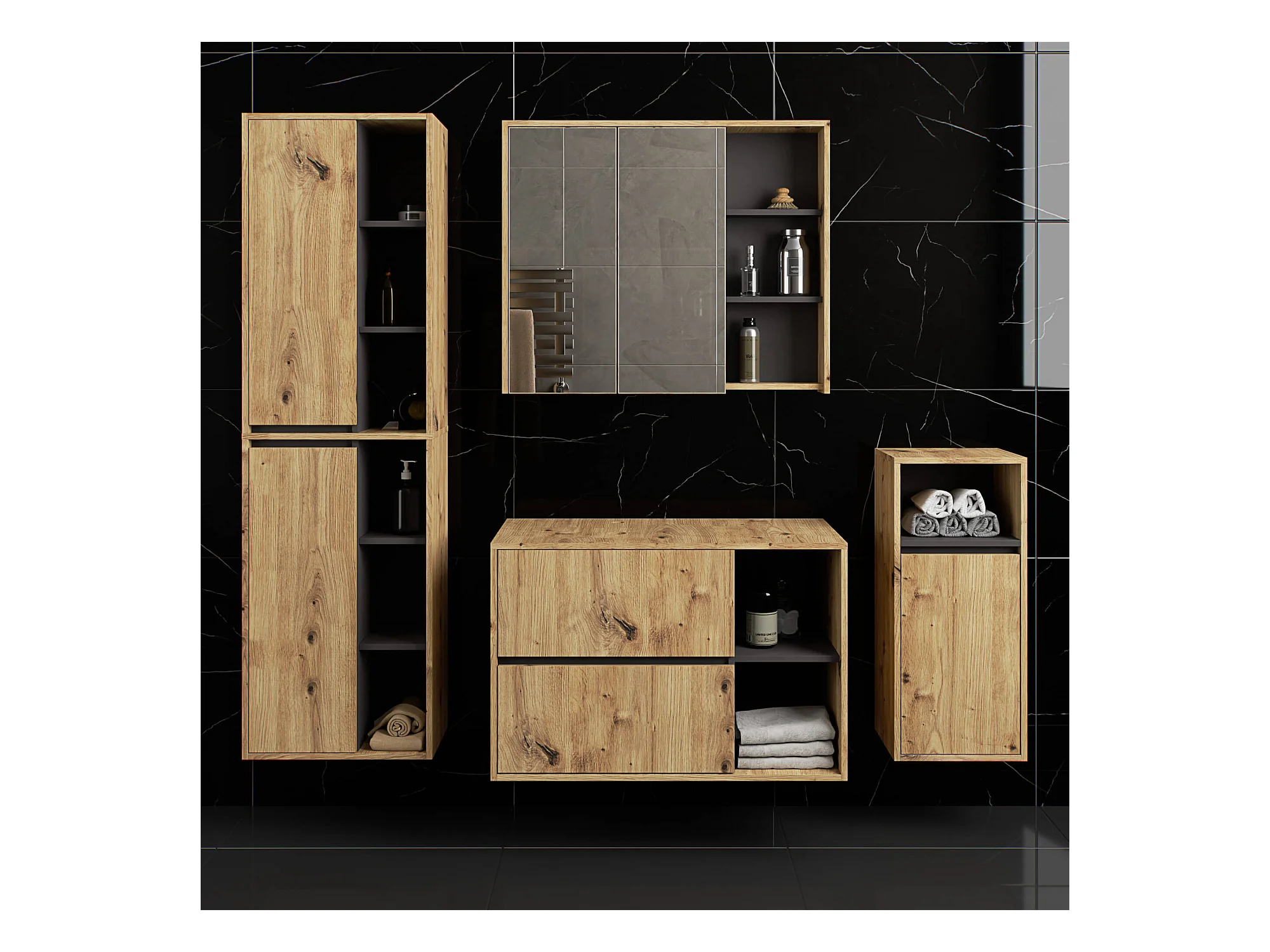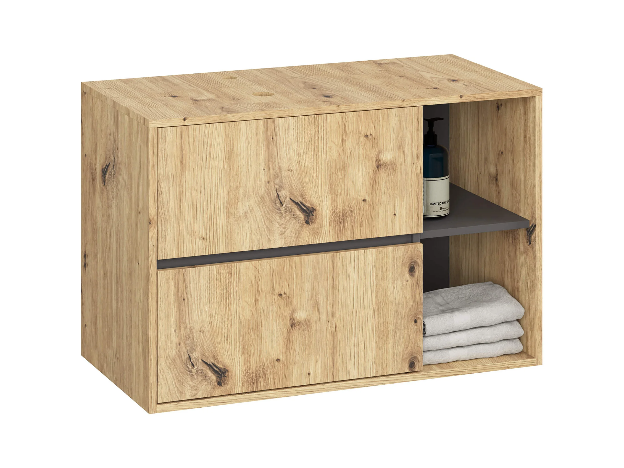 Meuble avec vasque à poser VAMI suspendu Chêne Artisan 90 cm 2 tiroirs intérieur Gris Graphite 2 étagères 90x45,5x60 cm