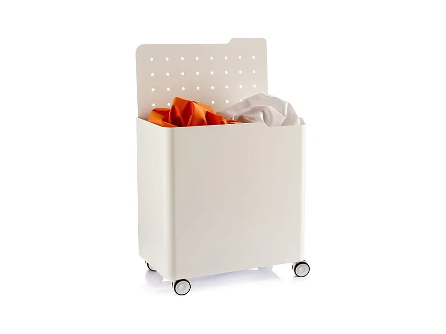 Panier à linge LUCCA sur roulettes – 60 L, 2 compartiments, fermeture douce, structure métallique blanche