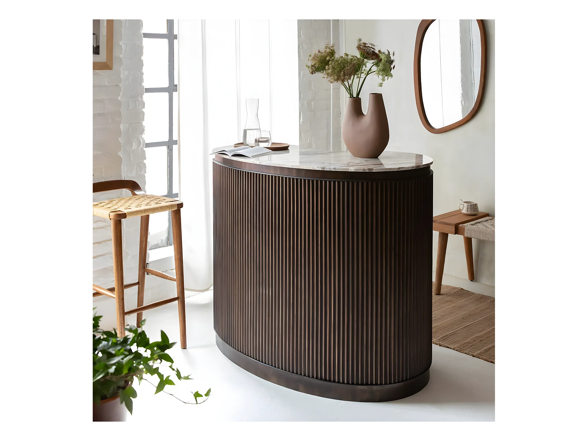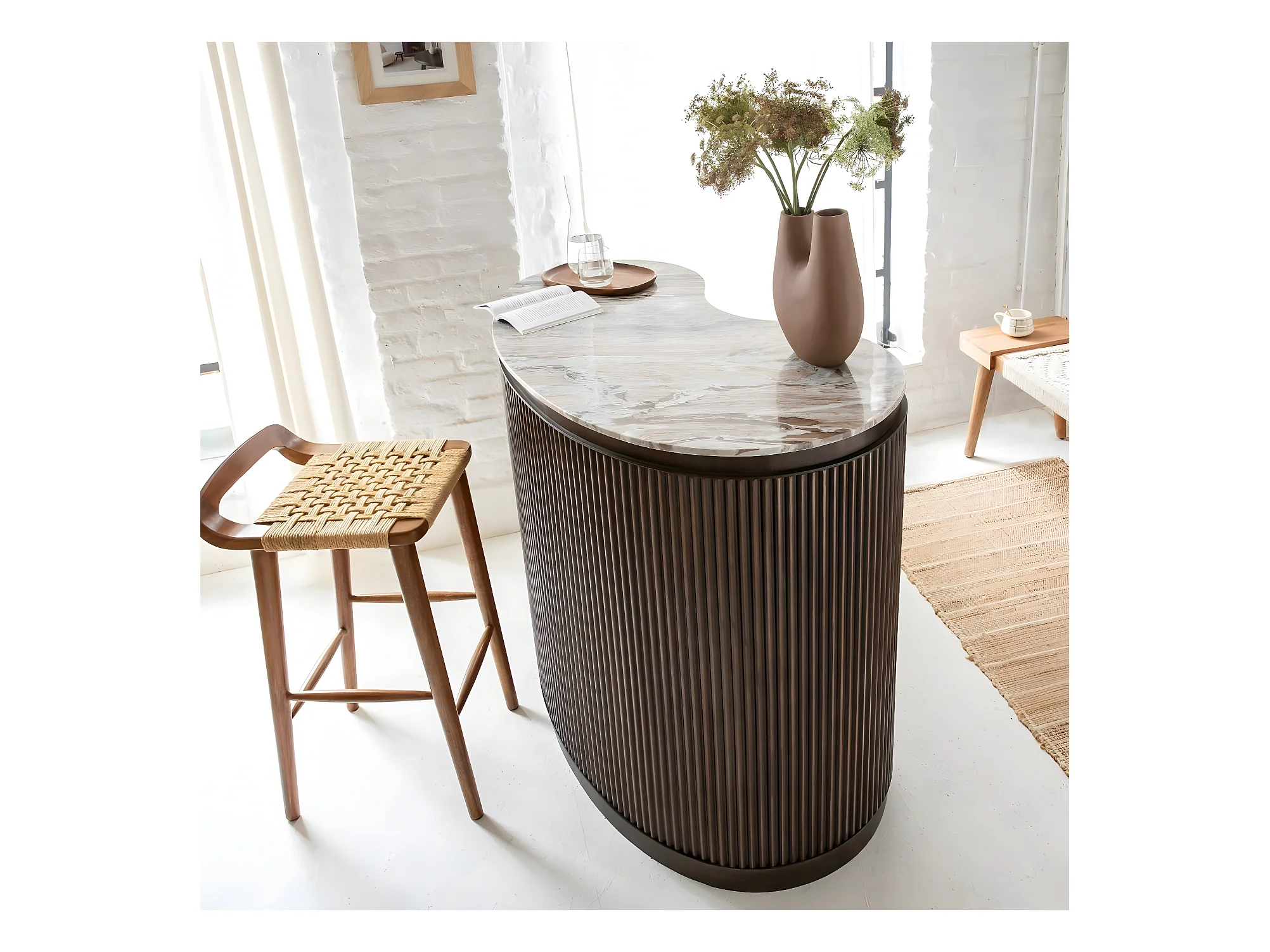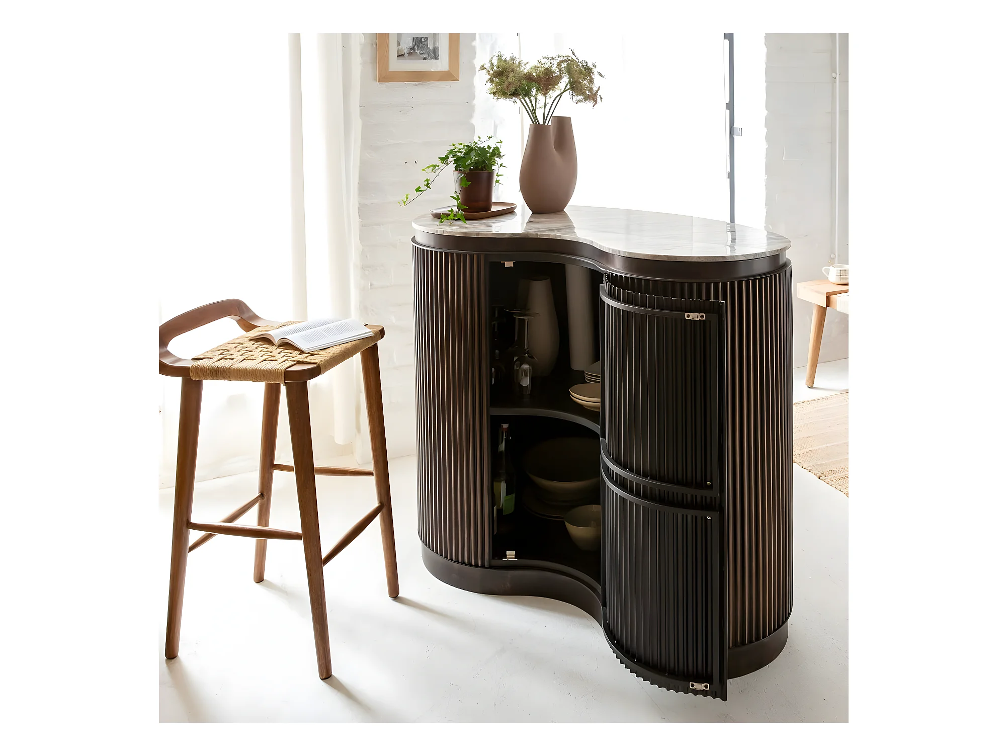 Meuble bar haricot en marbre et métal Orlando