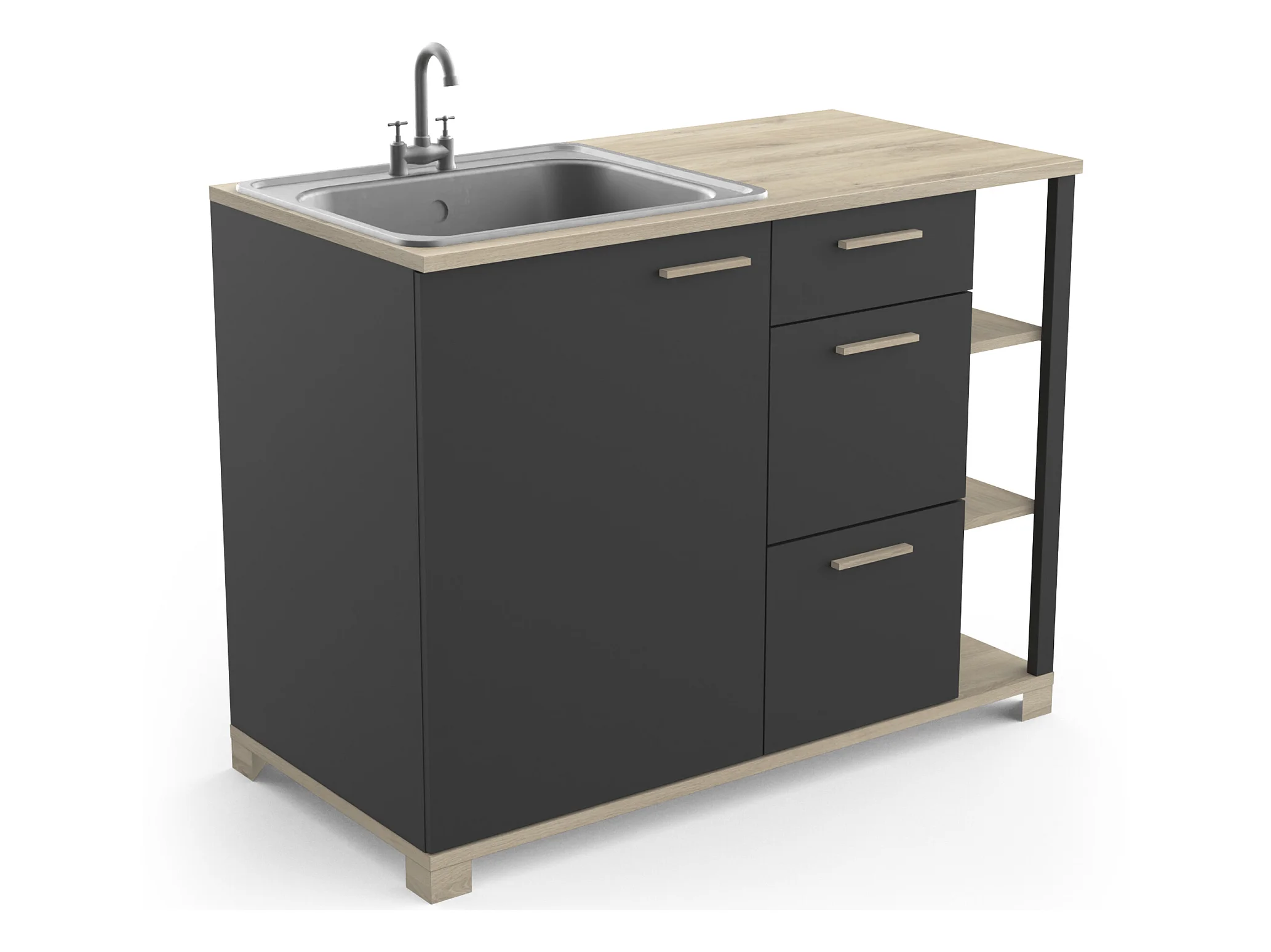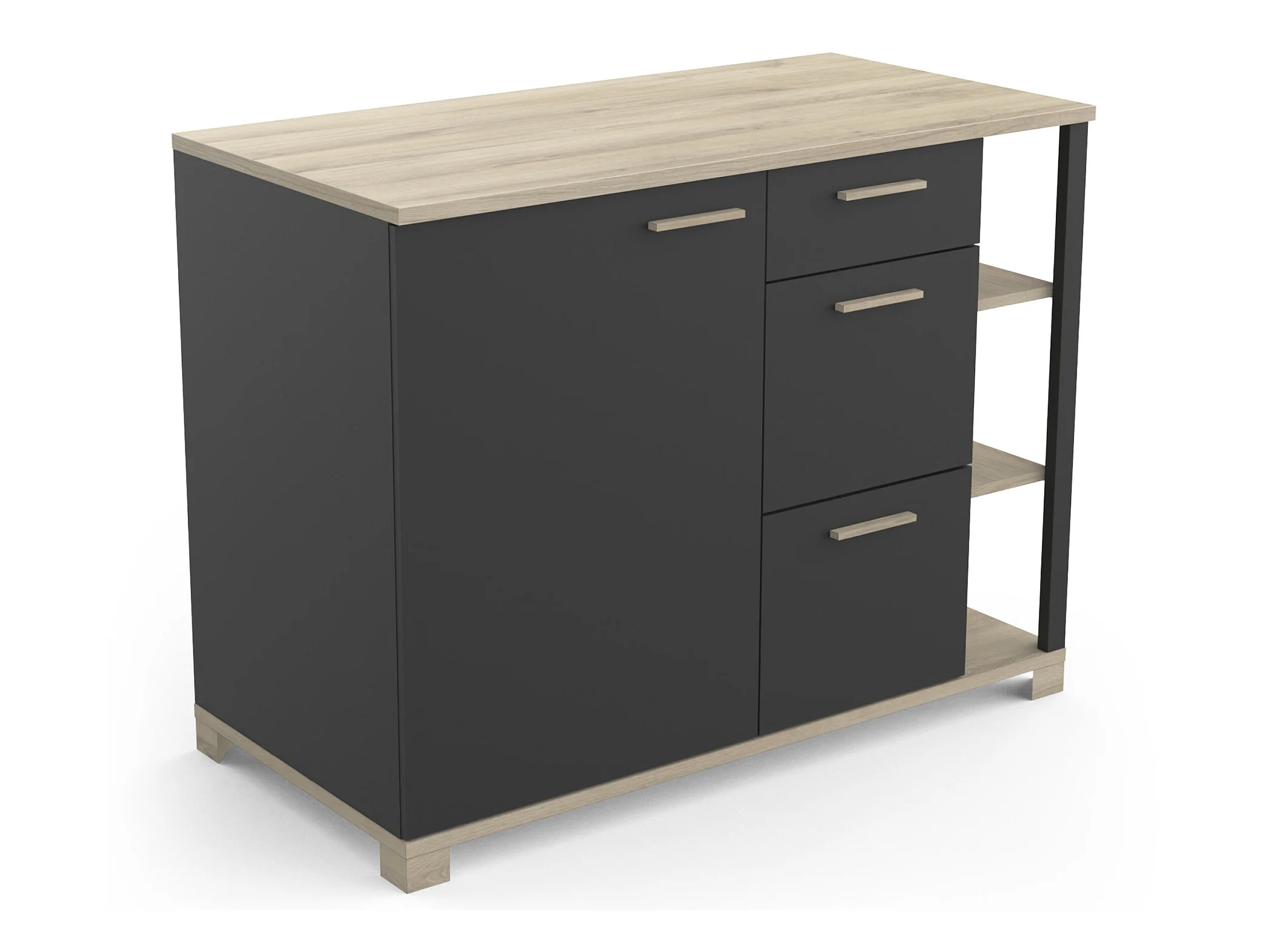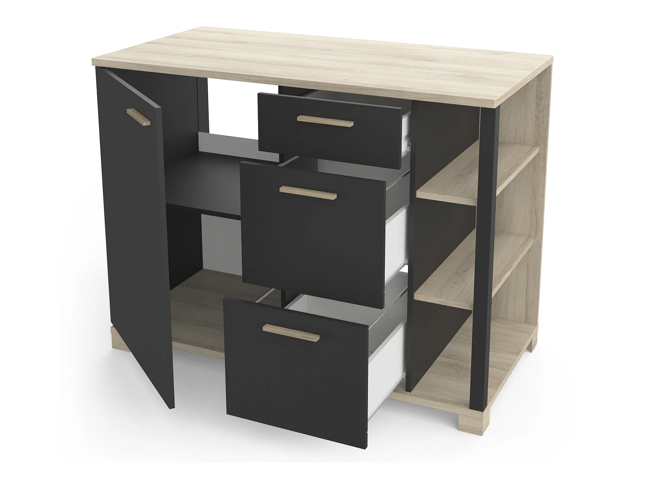 Meuble bas coloris chêne kronberg / noir - longueur 120 x profondeur 60 x hauteur 90 cm