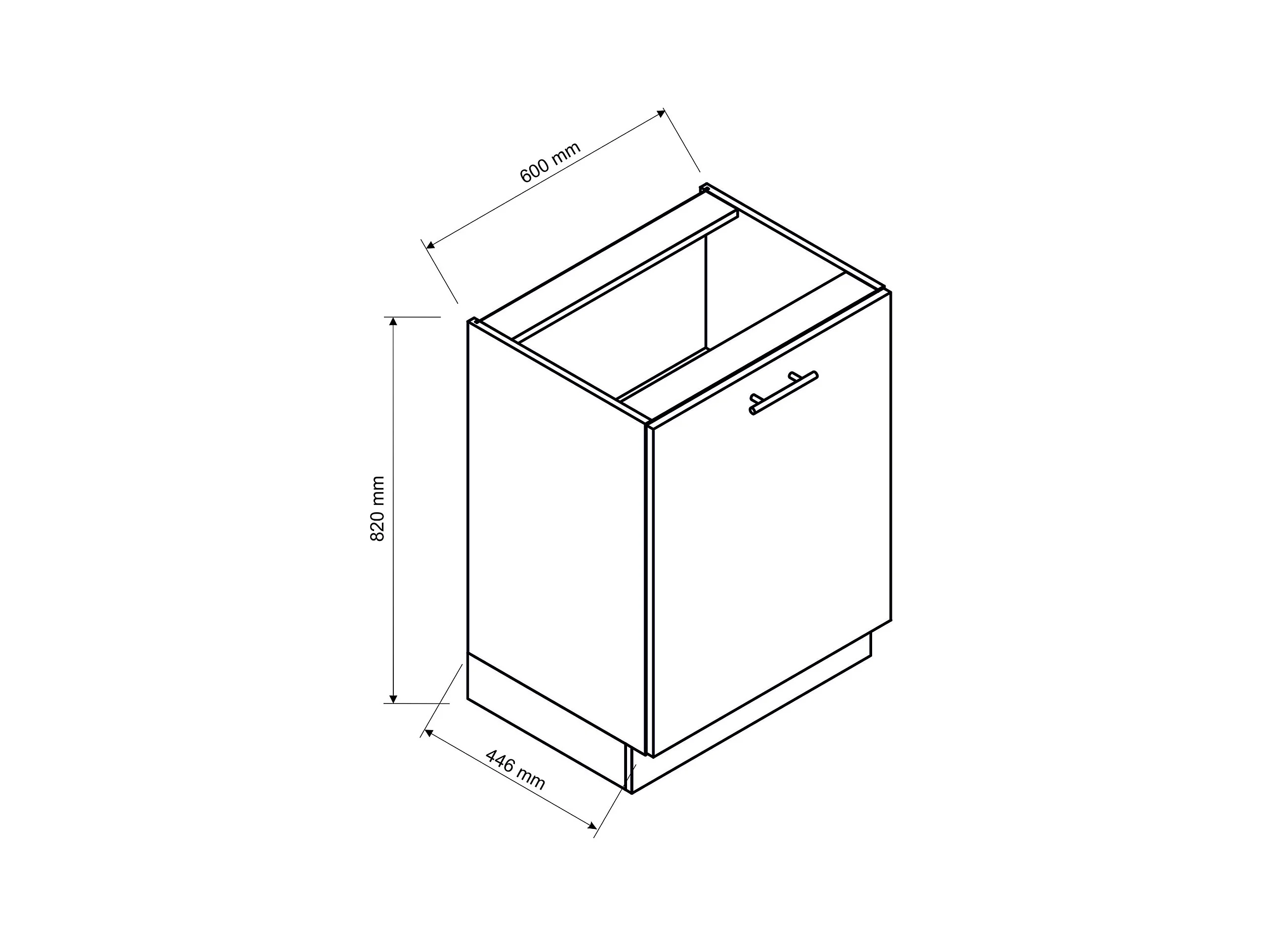 Meuble bas de cuisine avec 1 porte blanc - longueur 60 x profondeur 44,60 x hauteur 82 cm
