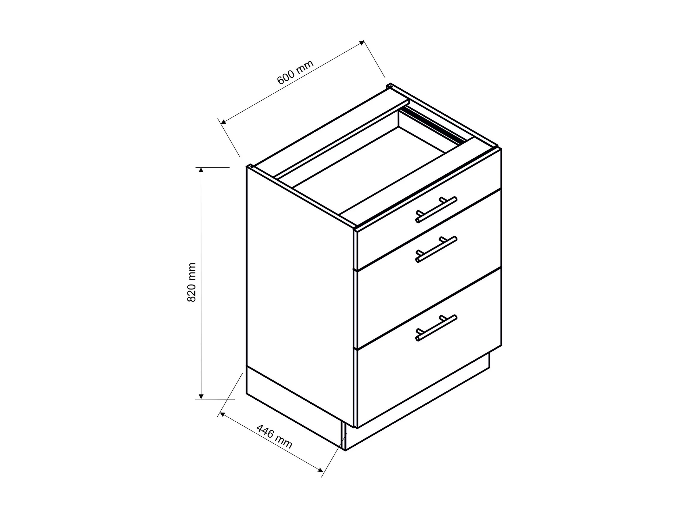 Meuble bas de cuisine avec 3 tiroirs coloris blanc - longueur 60 x profondeur 44,60 x hauteur 82 cm