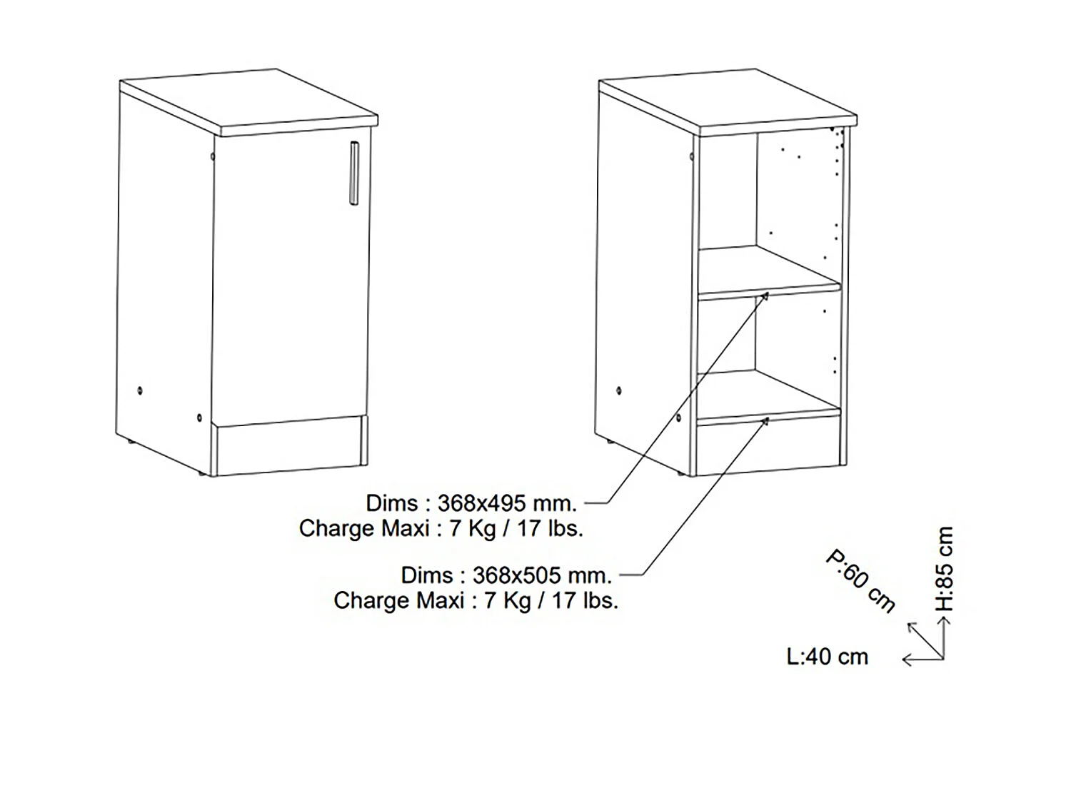 Meuble bas de cuisine coloris chêne kronberg, blanc - Longueur 40 x Hauteur 85 x Profondeur 60 cm