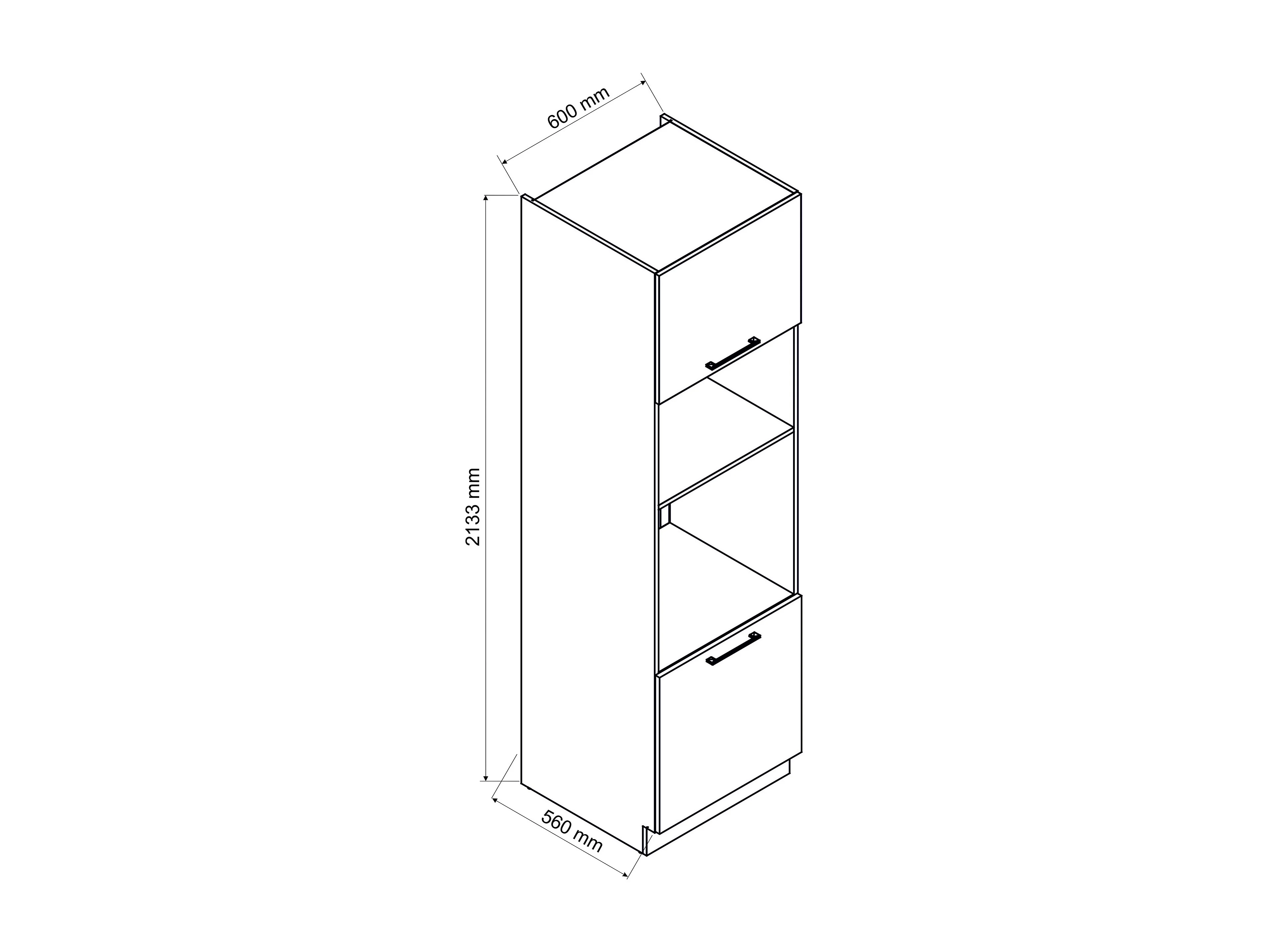 Meuble bas de cuisine pour four avec 2 portes blanc- longueur 60 x profondeur 56 x hauteur 213 cm