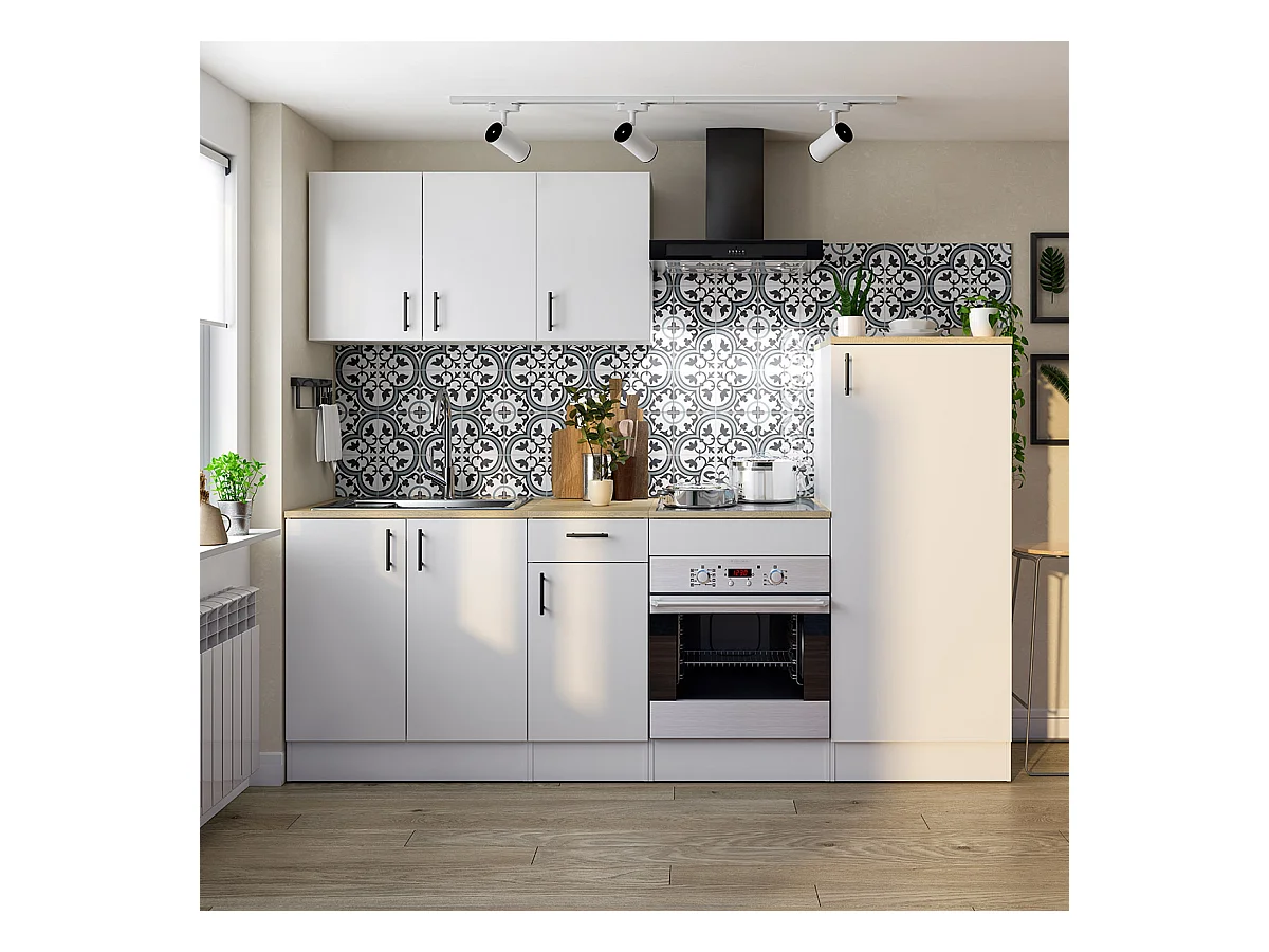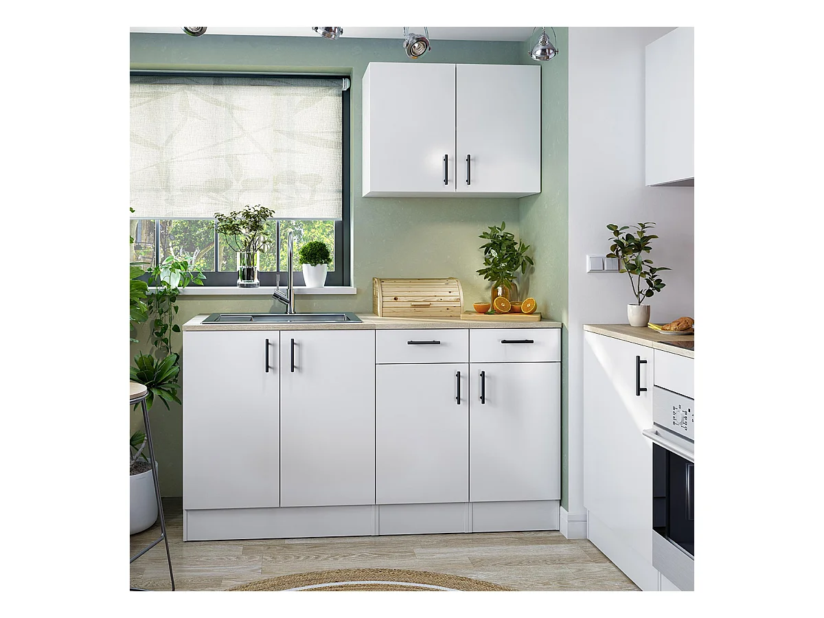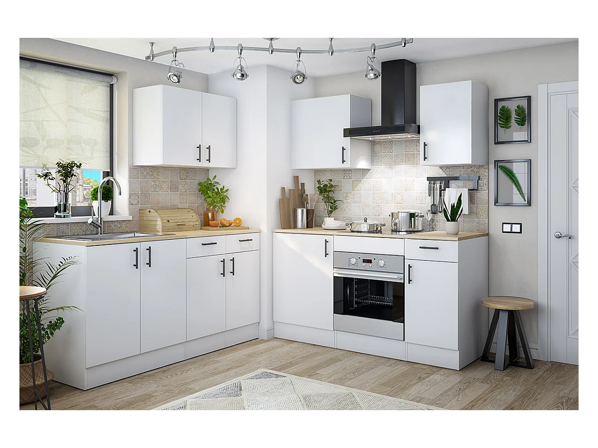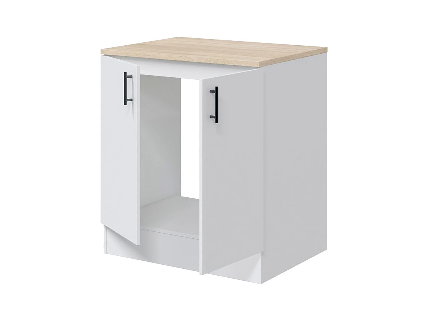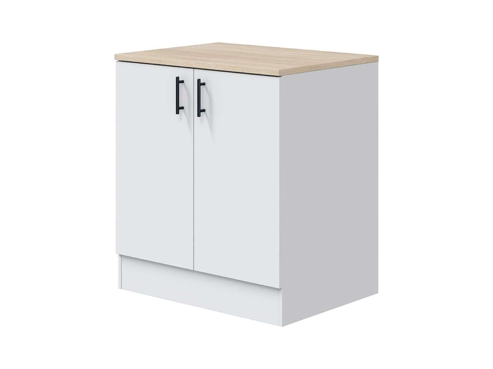 Meuble bas de cuisine sous évier 2 portes avec plan de travail coloris blanc brillant /chêne canadien - hauteur 90 x longueur 80 x profondeur 60 cm