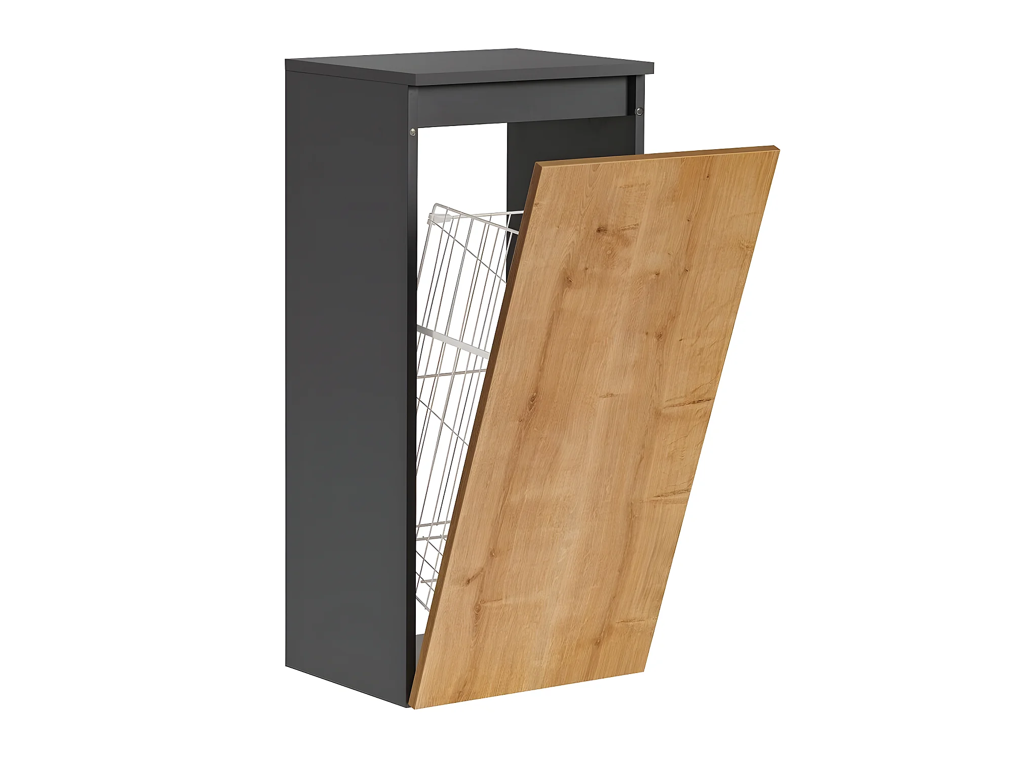 Meuble bas de salle de bain avec panier à linge inclus - Gris diamant et chêne hamilton - L40-H87-P33 - MARSEILLA