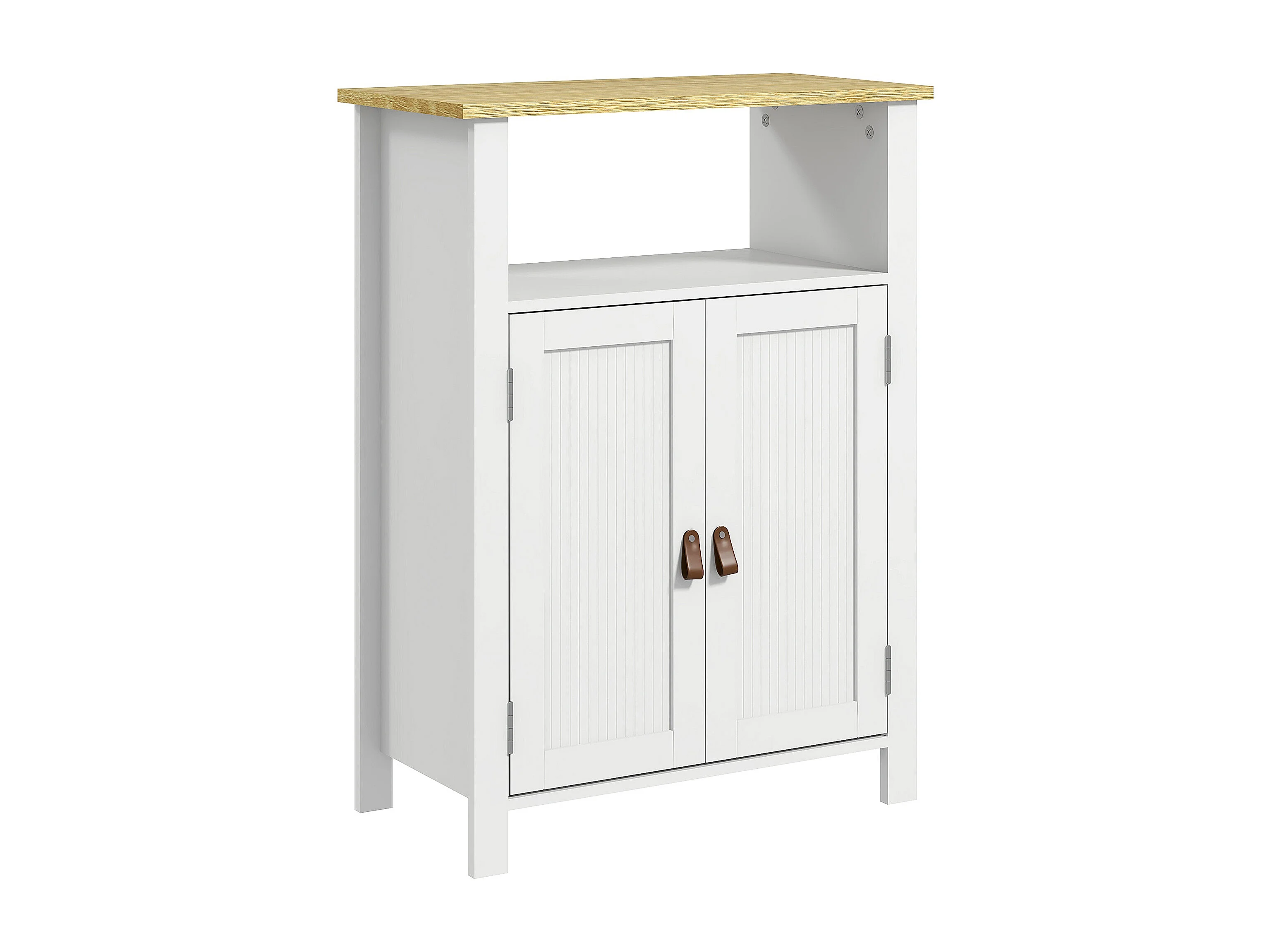 Meuble bas de salle de bain sur pied 2 portes étagère niche plateau aspect bois clair blanc