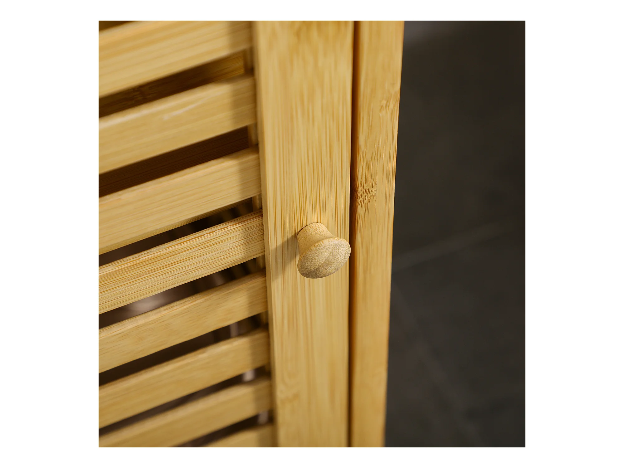 Meuble WC meuble dessus toilettes style cosy dim. 60L x 23l x 173H cm portes à lattes étagère bambou MDF aspect bois clair