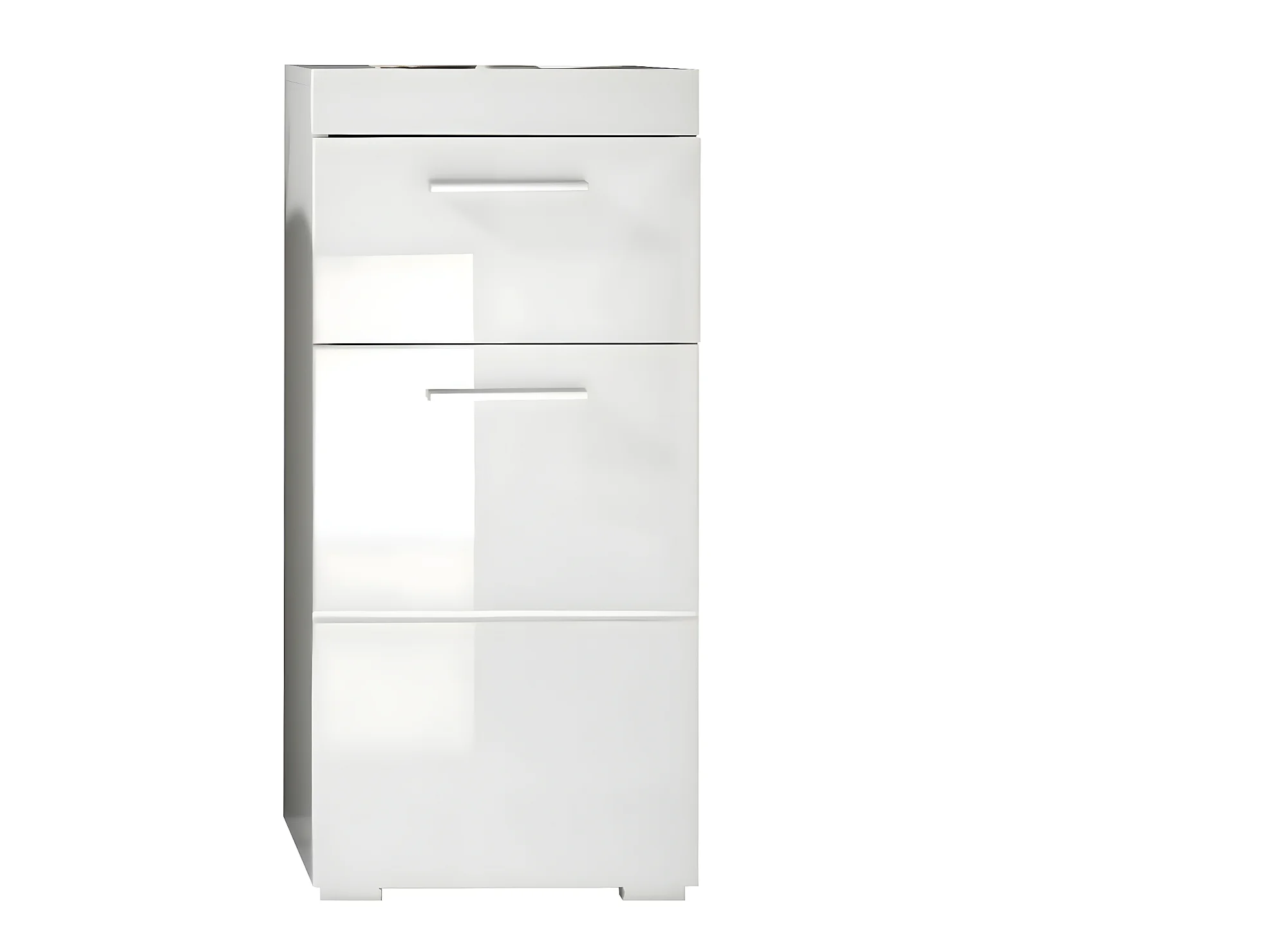 Meuble colonne salle de bain blanc brillant 2 portes 1 tiroir Kinzo 30cm