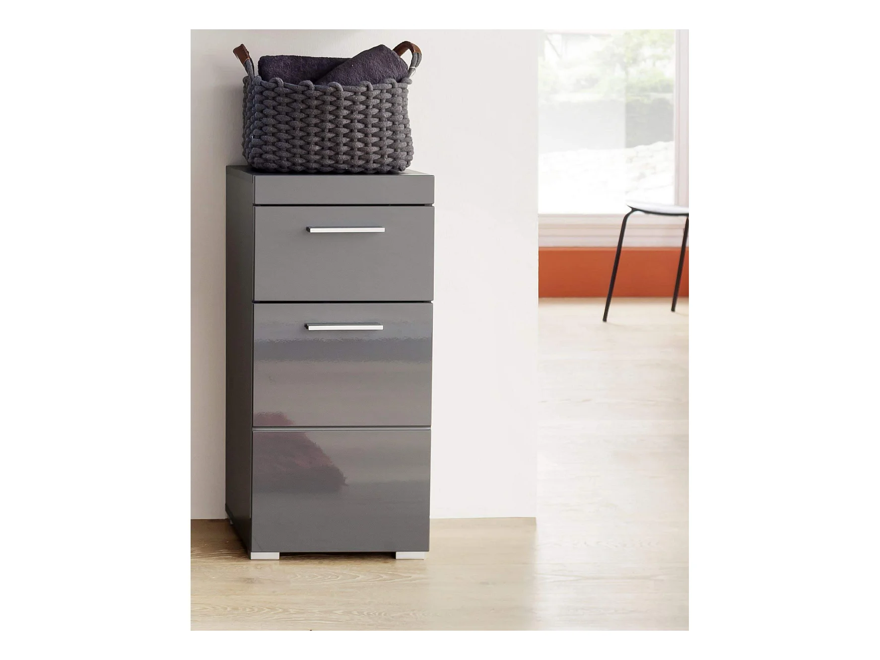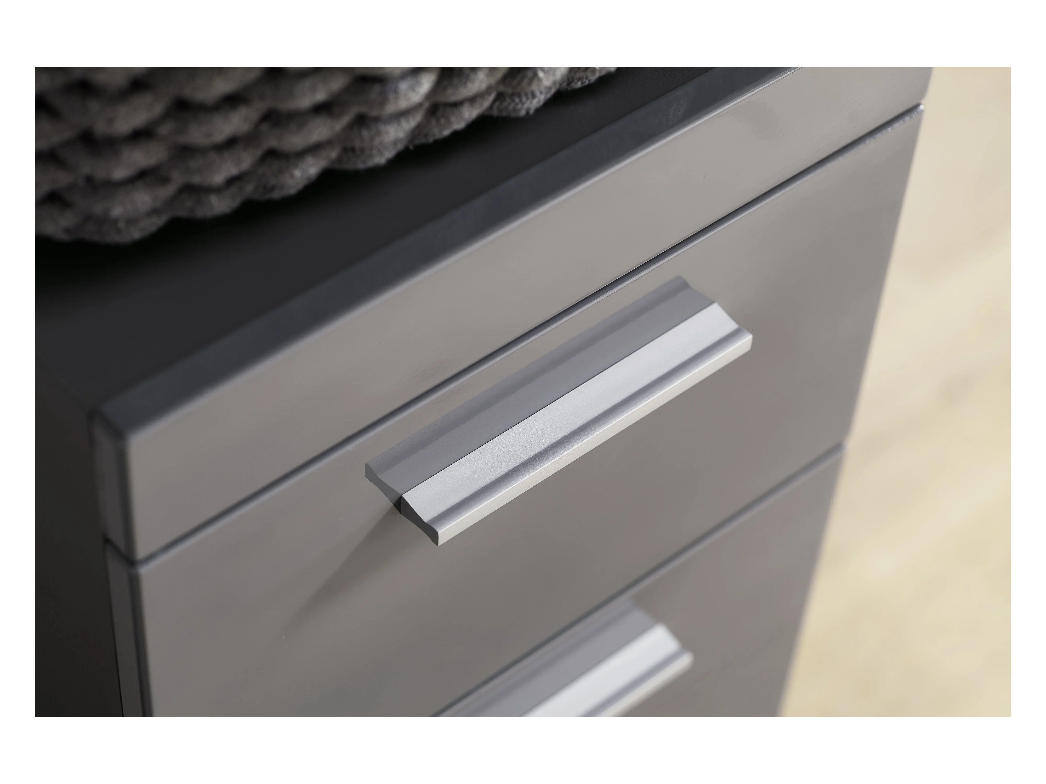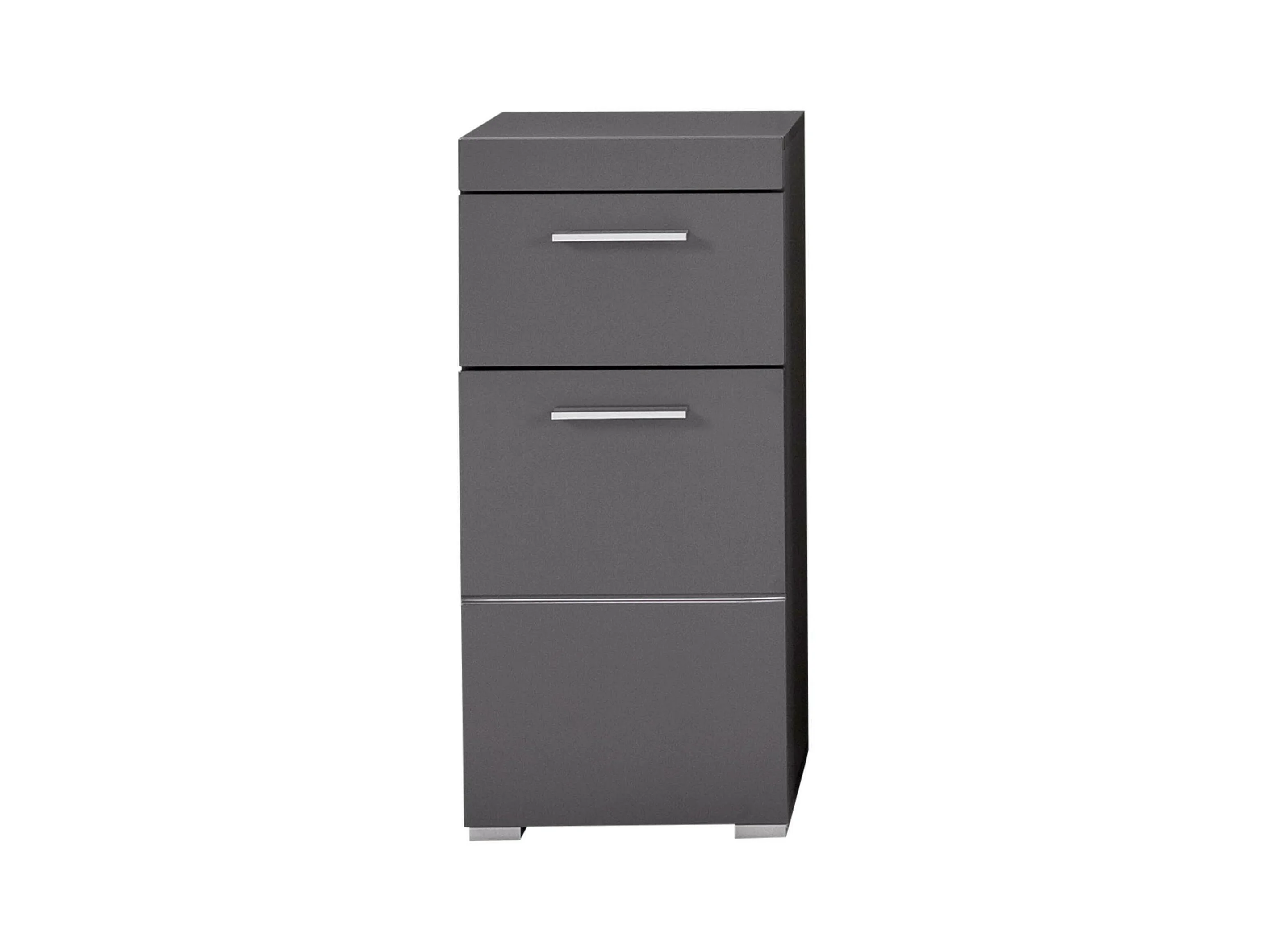 Meuble bas mélaminé gris ; L - H - P : 37 - 79 - 31 cm