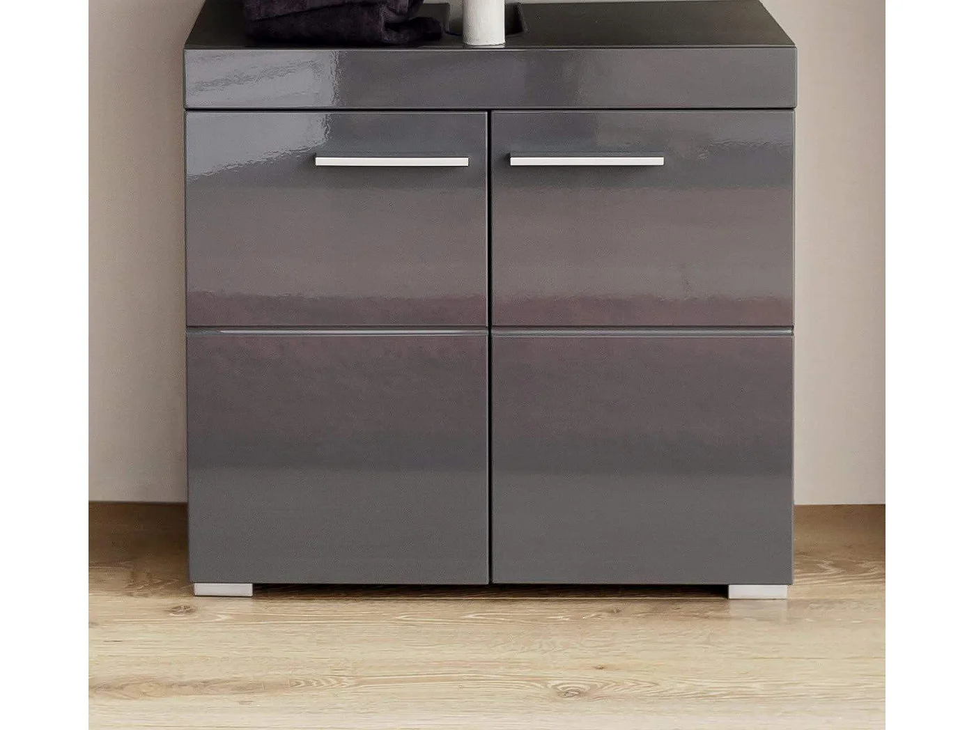 Meuble bas mélaminé gris. L - H - P : 73 - 79 - 31 cm