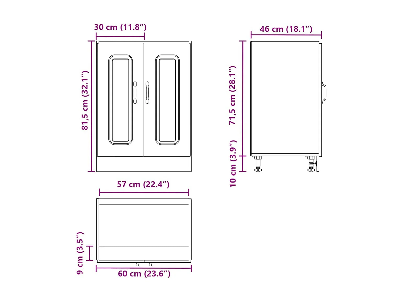 Meuble bas pour évier Kalmar blanc 60x46x81,5cm bois ingénierie