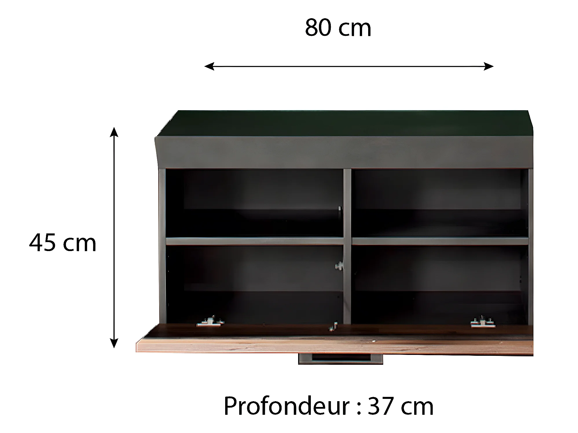 Meuble chambre. Banc de rangement en mélaminé coloris bois effet vieilli avec finition gris ciment . L - H - P : 80 - 45 - 37 cm.