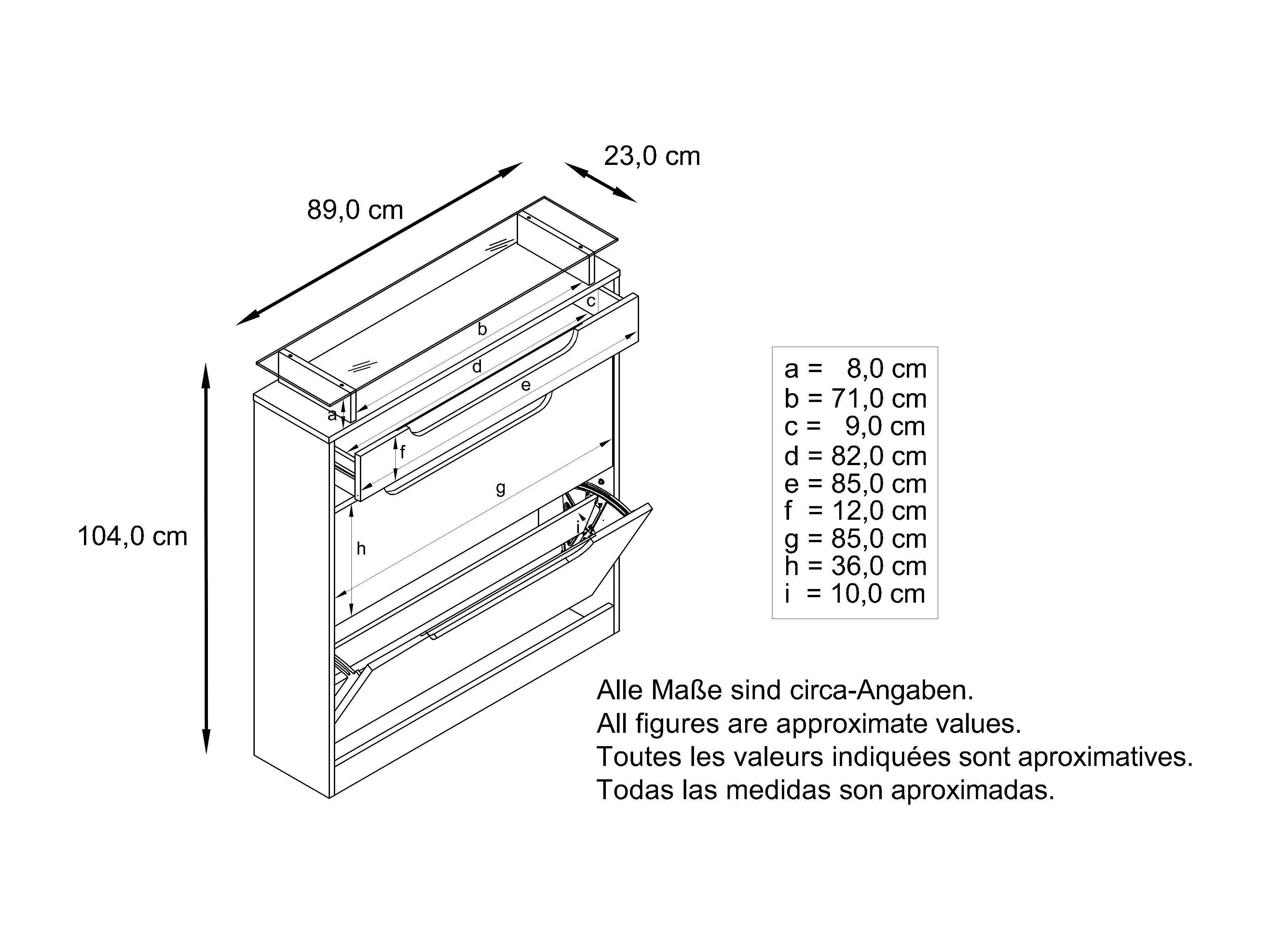 Meuble chaussure Fiesta pour 16 paires de chaussures avec clapets et tablette en verre, Anthracite mat/Mûre brillant, poignées Mûre brillant (89x104x23 cm)