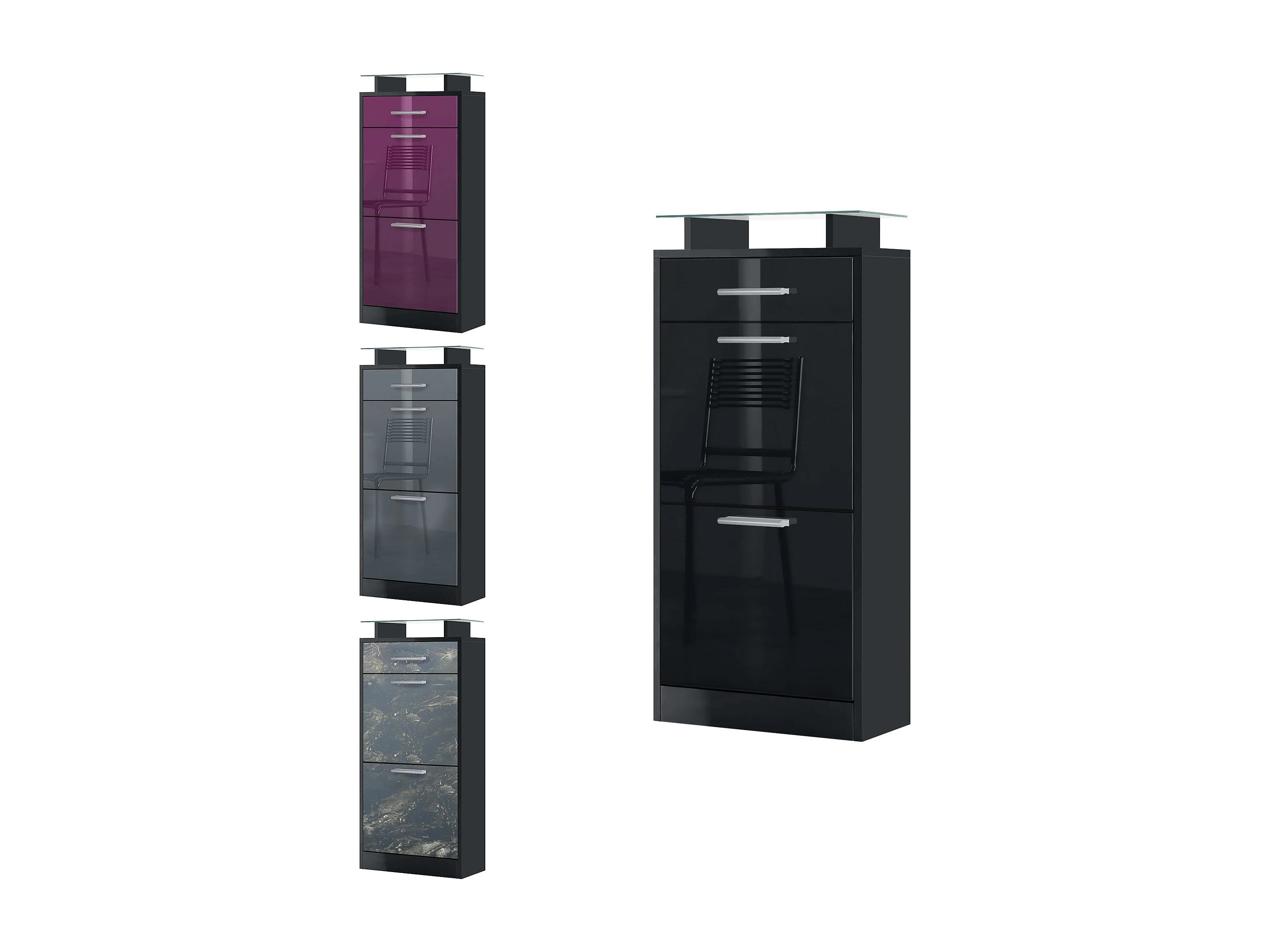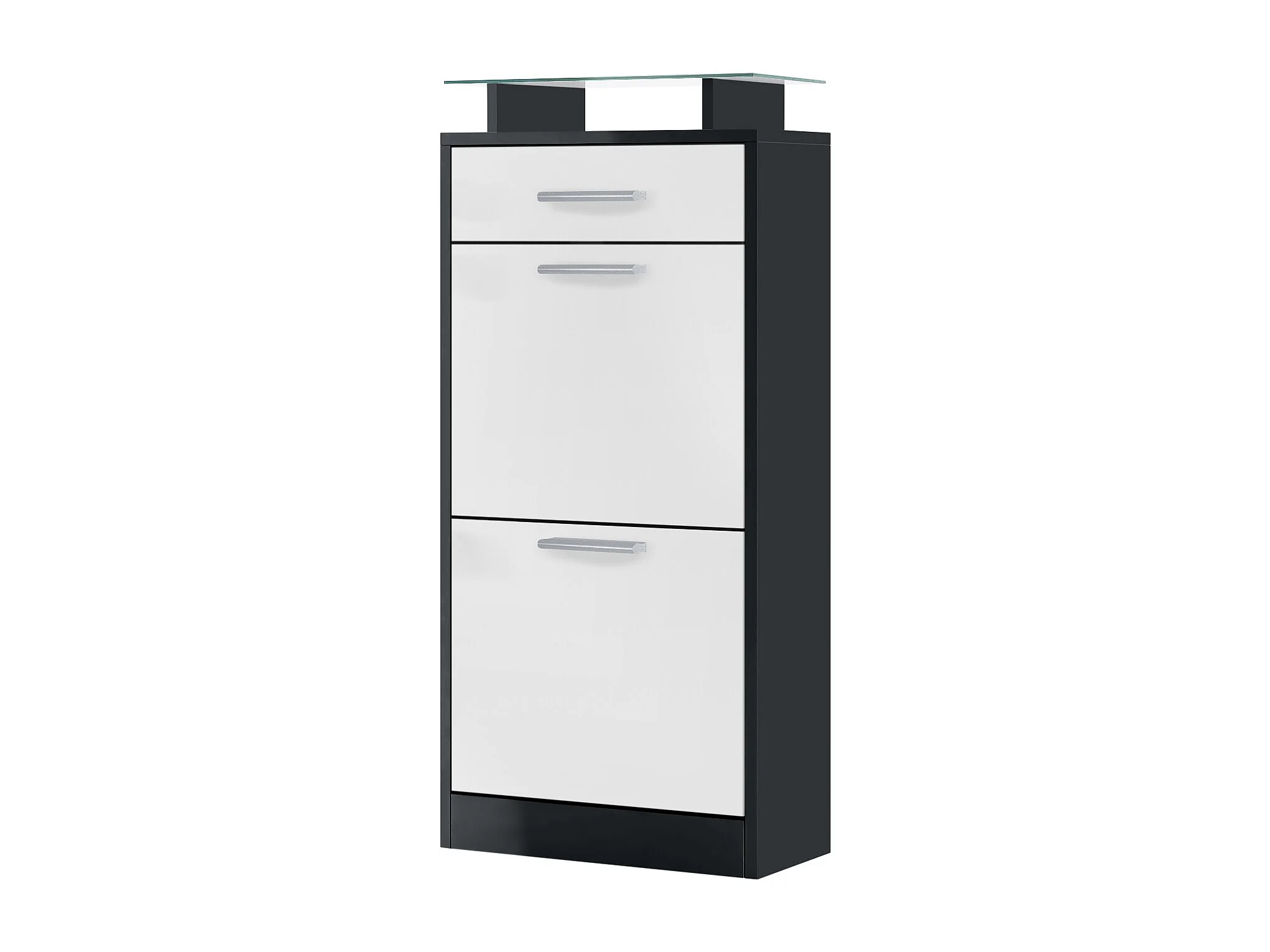 Meuble à Chaussures Lavia V2, Range-Chaussures pour 12 Paires avec 3 Abattants et Étagère en Verre, anthracite mat/blanc haute brillance (46 x 128 x 23 cm)